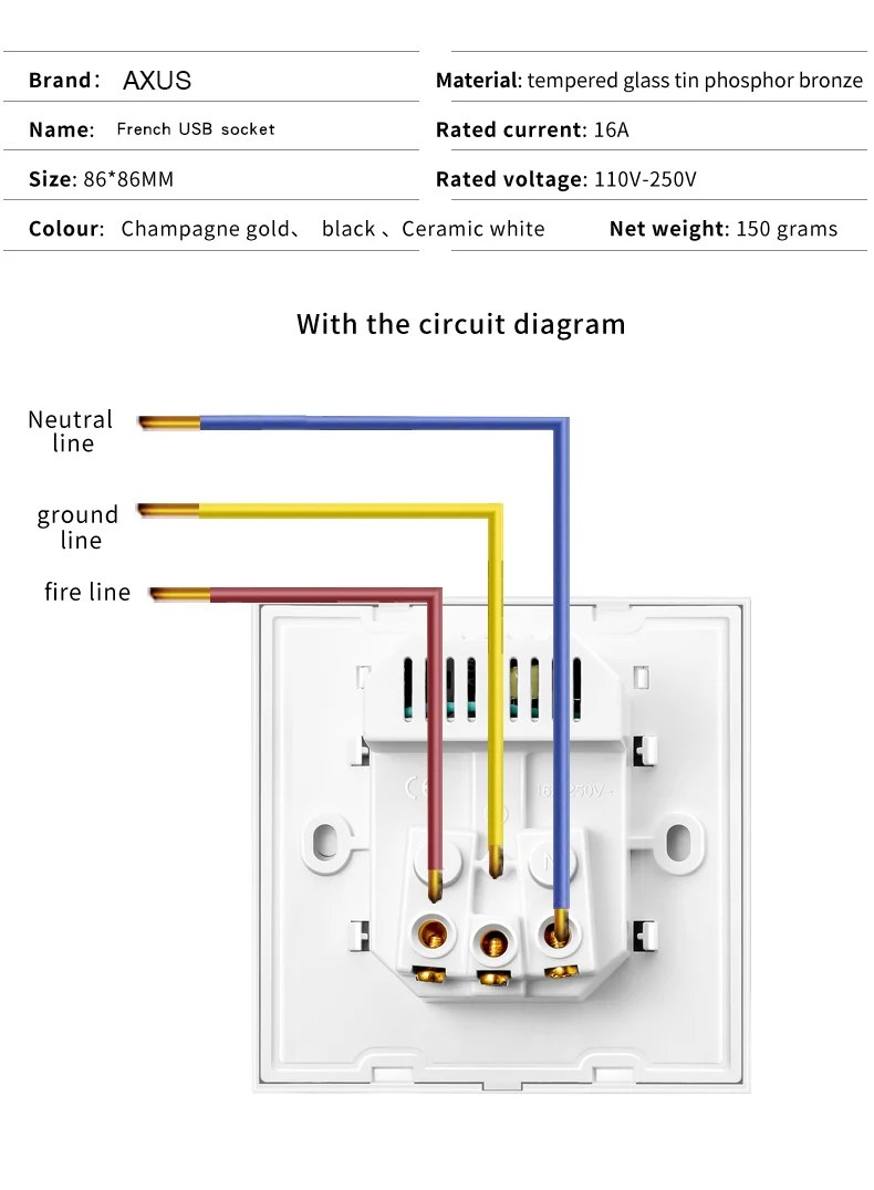 1. Качество гарантировано сертификатами CE, RoHS и China CCC2. 100% абсолютно новая и высококачественная панель настенного гнезда.3. Стандарт воспламеняемости: V-04. Розетка европейского стандарта подходит для штепсельной вилки Европейского или французского стандарта.5. Этот продукт должен быть установлен профессиональным электриком