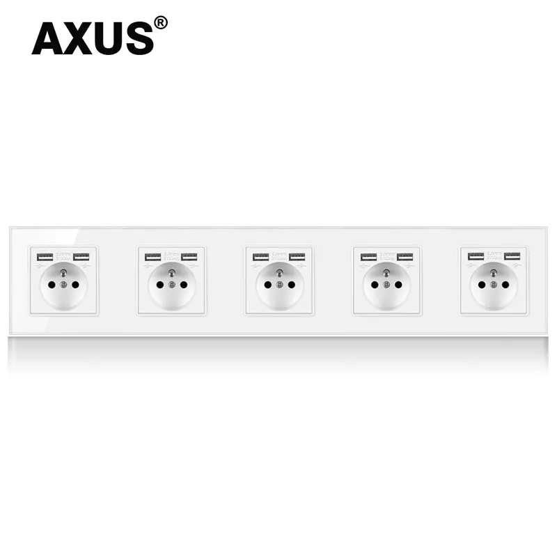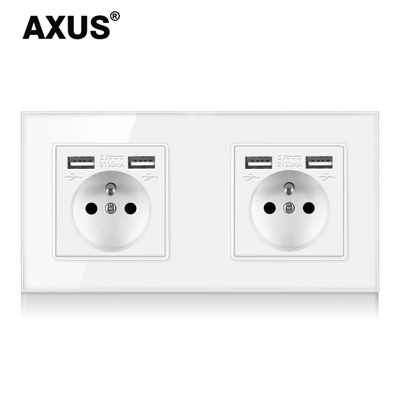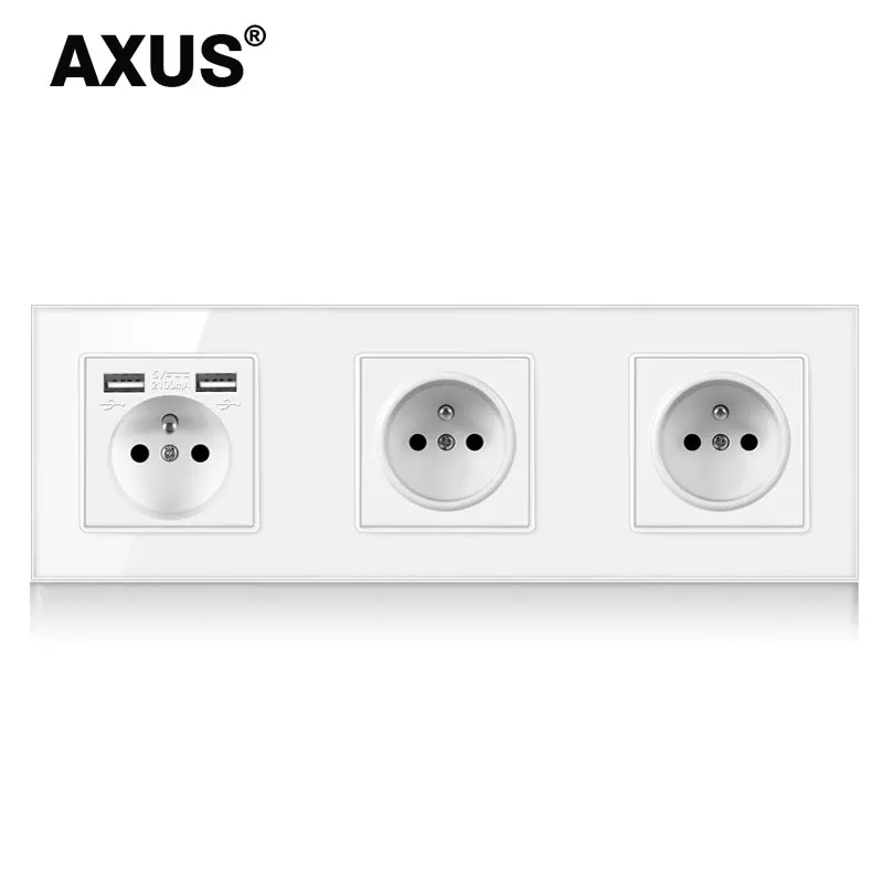 Новая внешняя панель AXUS с USB-выходом, тройная настенная розетка без вилки, закаленное стекло, одинарный, французский, 16 А