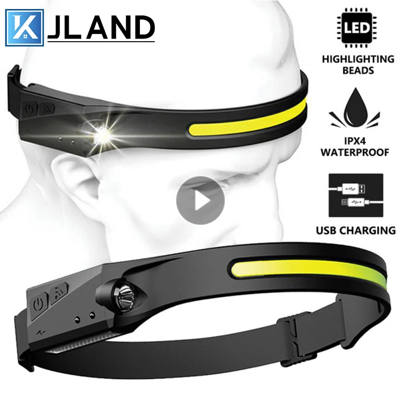 Индукционный мощный налобный фонарь COB, светодиодный налобный фонарь со встроенной вспышкой 18650, USB Перезаряжаемый налобный фонарь, 5 режимов, рыболовный фонарь