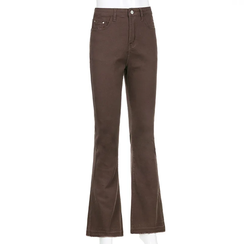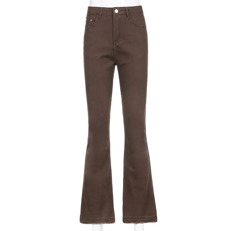 Женские джинсы-клеш, с высокой талией, коричневые, с карманами