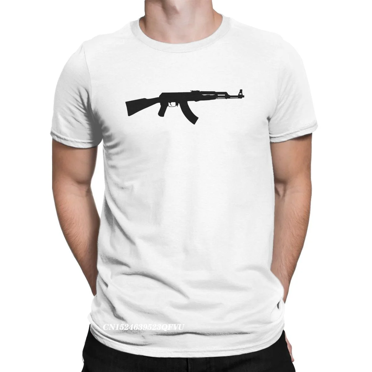 Футболка мужская с круглым вырезом, оригинальная забавная хлопковая рубашка в стиле Харадзюку, топ, одежда с винтовкой АК 47, большие размеры
