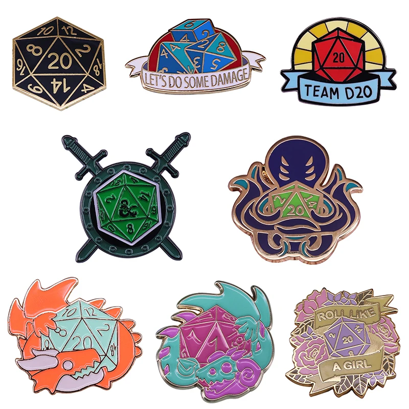 Мультяшные 20-сторонние кости Подземелья и Драконы эмалевые булавки D20 игра идентификация одежды Кнопка значок ювелирные изделия подарок для друзей