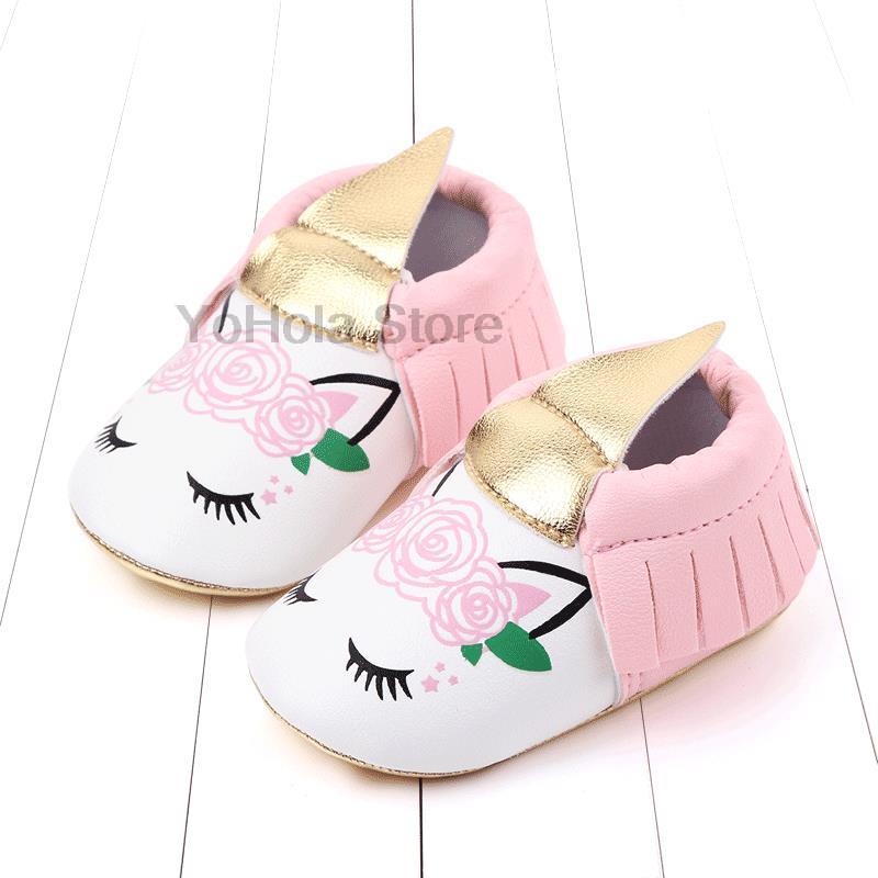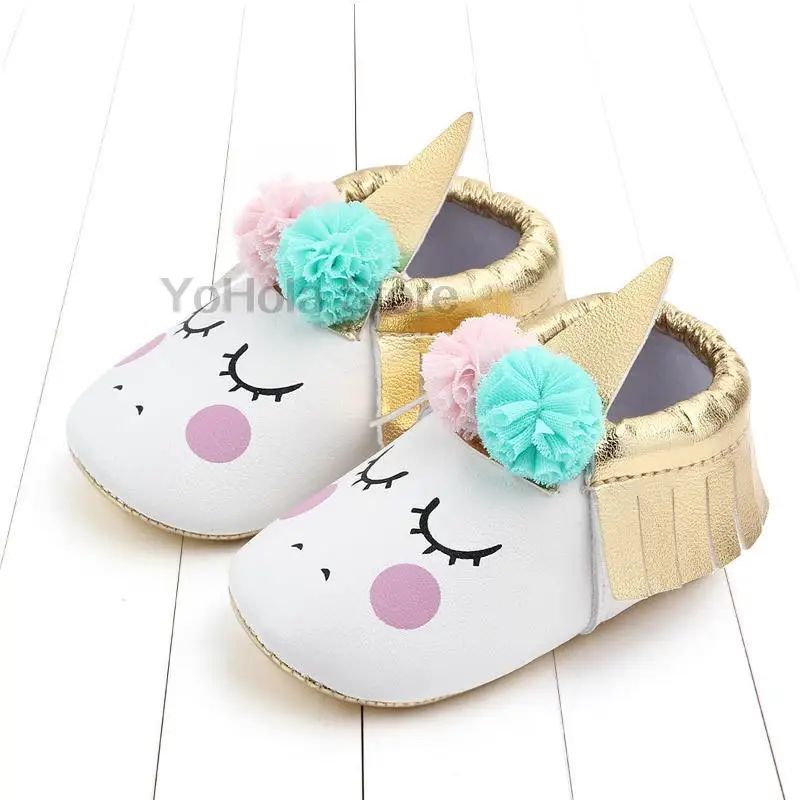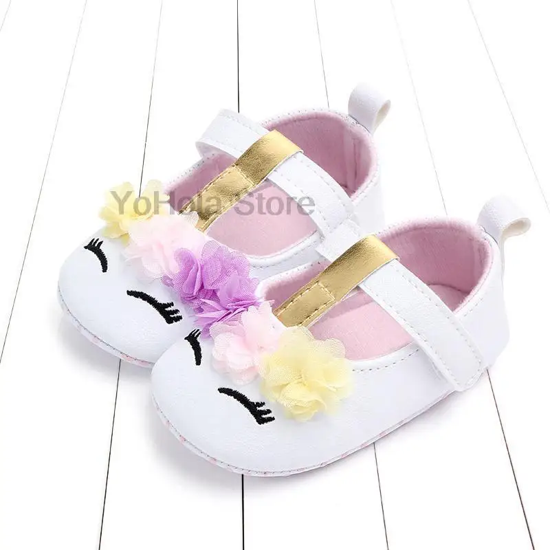 Новинка 2022, Демисезонная обувь из искусственной кожи с изображением единорога и цветов для маленьких девочек, обувь на мягкой подошве, обувь для малышей, пинетки для новорожденных, кроватка