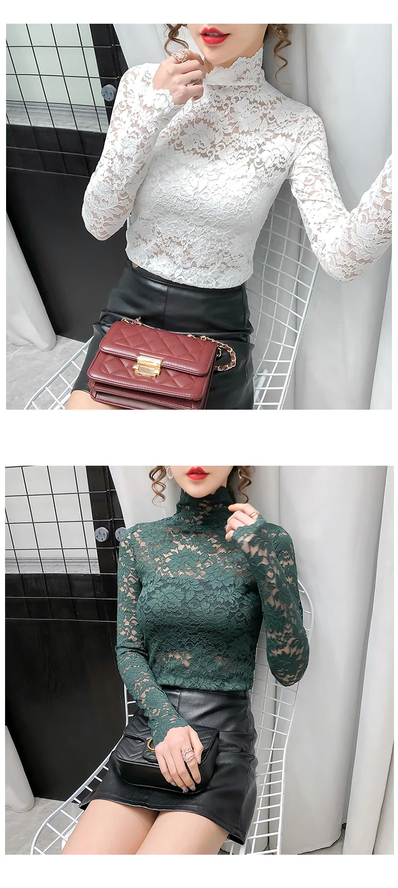 Блузка Женская осенне-зимняя облегающая кружевная рубашка с высоким...