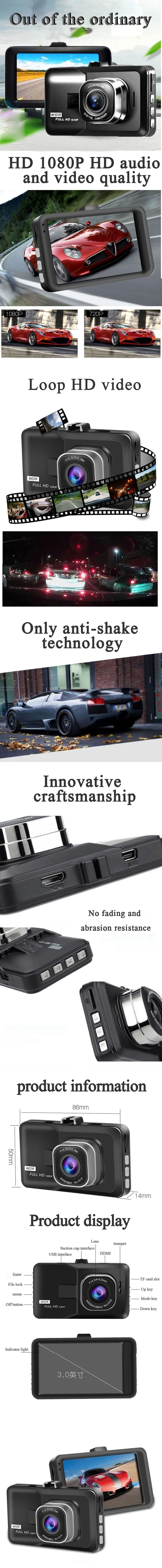 Видеорегистратор Full HD 1080P, Автомобильный видеорегистратор с камерой 3 дюйма, циклическая запись, ночная съемка, широкий угол, видеорегистратор