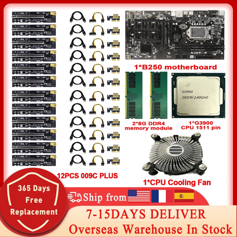 Комплект материнской платы B250 для майнинга с DDR4 VER009C010-X 1x 8x 16x PCIE RISER G3900, вентилятор охлаждения процессора для 8 12 GPU BTC ETH Miner Rig