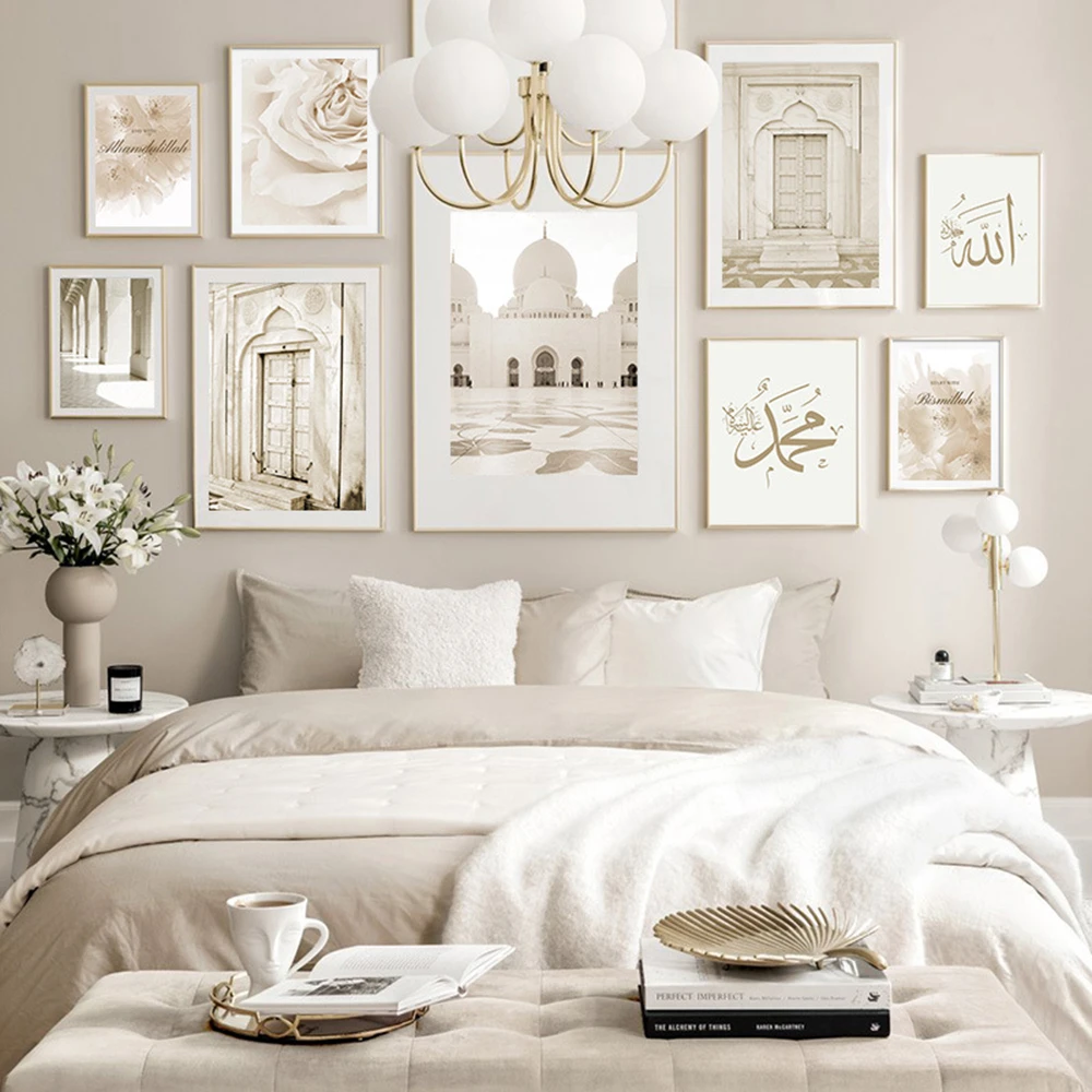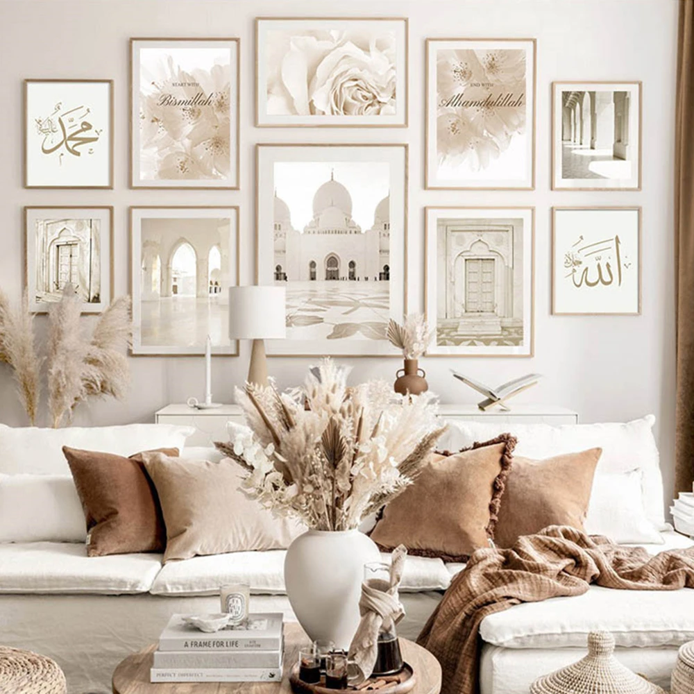 Исламский плакат с бежевыми цветами, печать на холсте, здание марок...