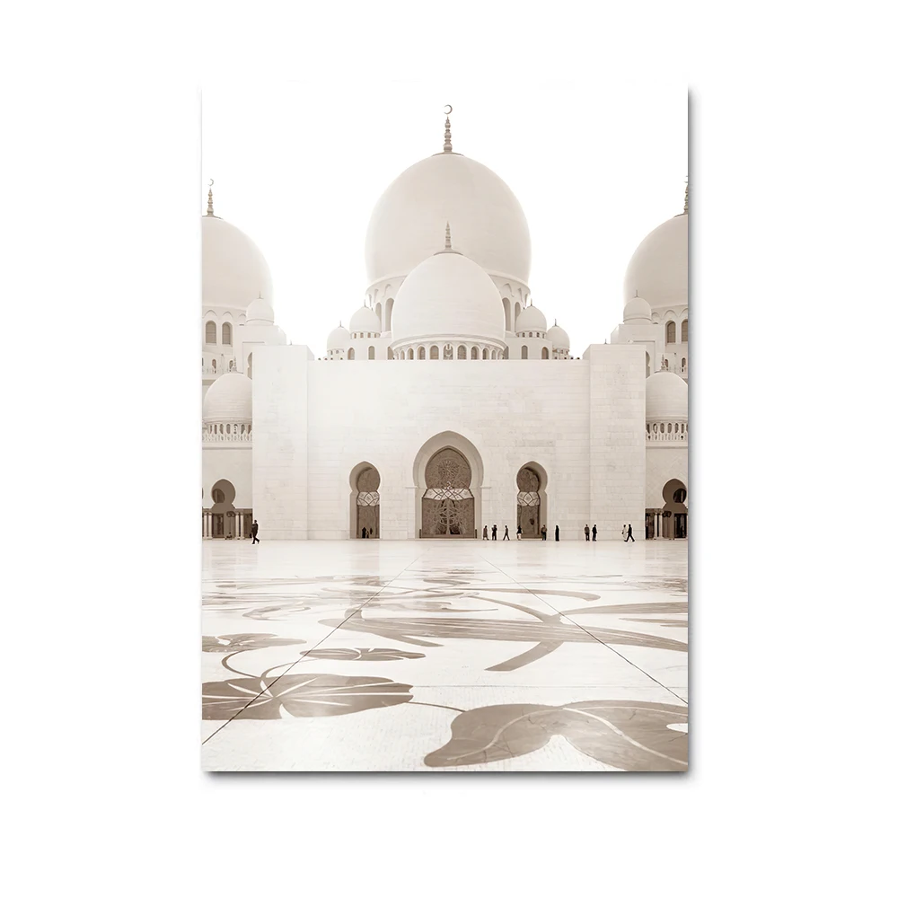 Исламский бежевый плакат, пейзаж, холст, печать, марокканская мечет...