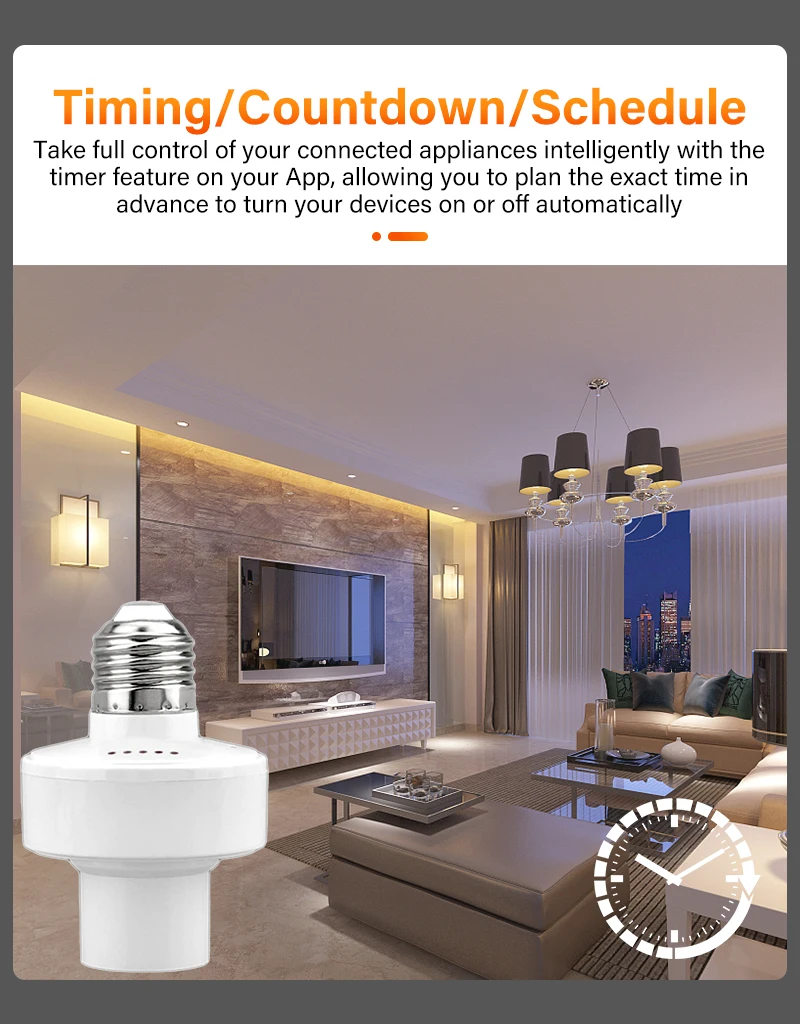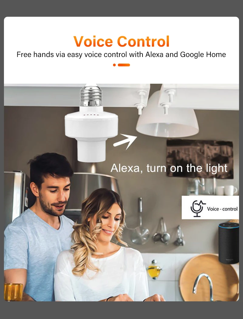 Совместим с лампочками на любой светильник с винтовым основанием E27, обеспечивая ваш умный образ жизни намного проще, что помогает превратить ваш существующий светильник в умный. (Примечание: Этот счетчик поддерживает только беспроводную сеть 2,4G, а не 5G.)