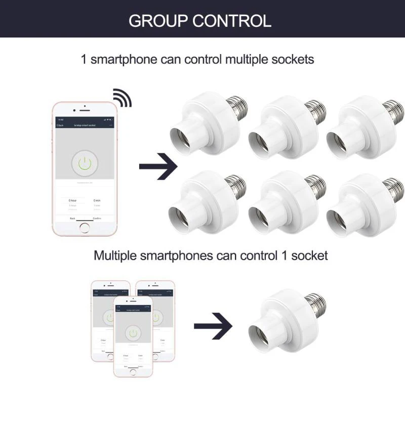 Поделитесь контролем с семьей или друзьями для максимального удобства, контролируя подключенные устройства вместе. Поддержка нескольких телефонов, чтобы контролировать один светильник или один телефон для одновременного управления несколькими адаптерами.