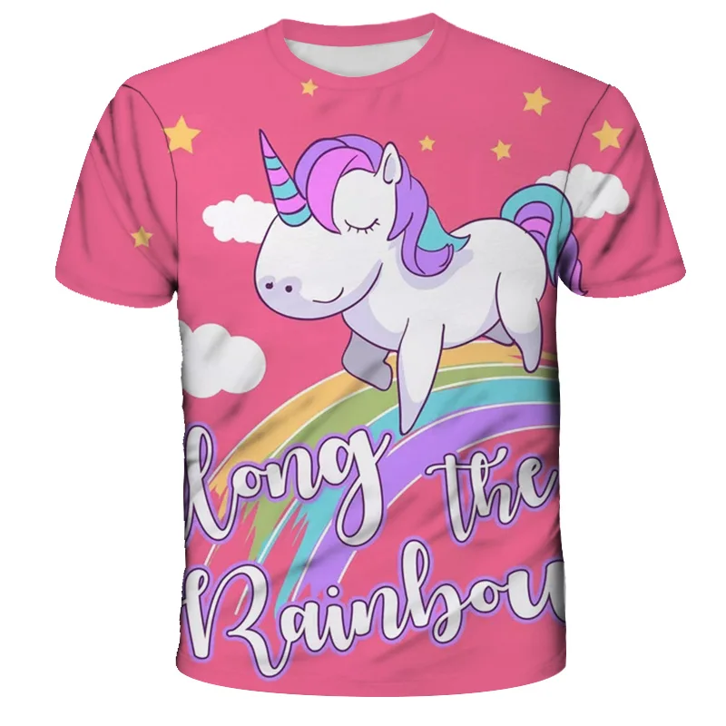Футболки с единорогом, одежда для девочек, детская 3D футболка для мальчиков, Детская летняя футболка с единорогом, живая Милая Забавная детская футболка, топ, женские футболки