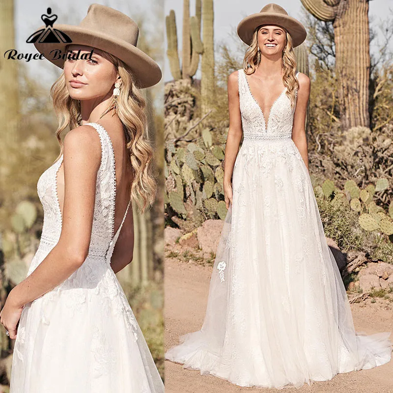 Кружевное свадебное платье в стиле бохо, ТРАПЕЦИЕВИДНОЕ платье без ...