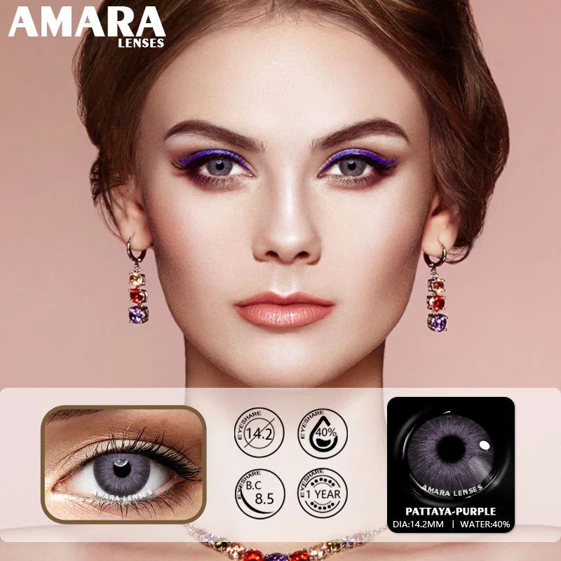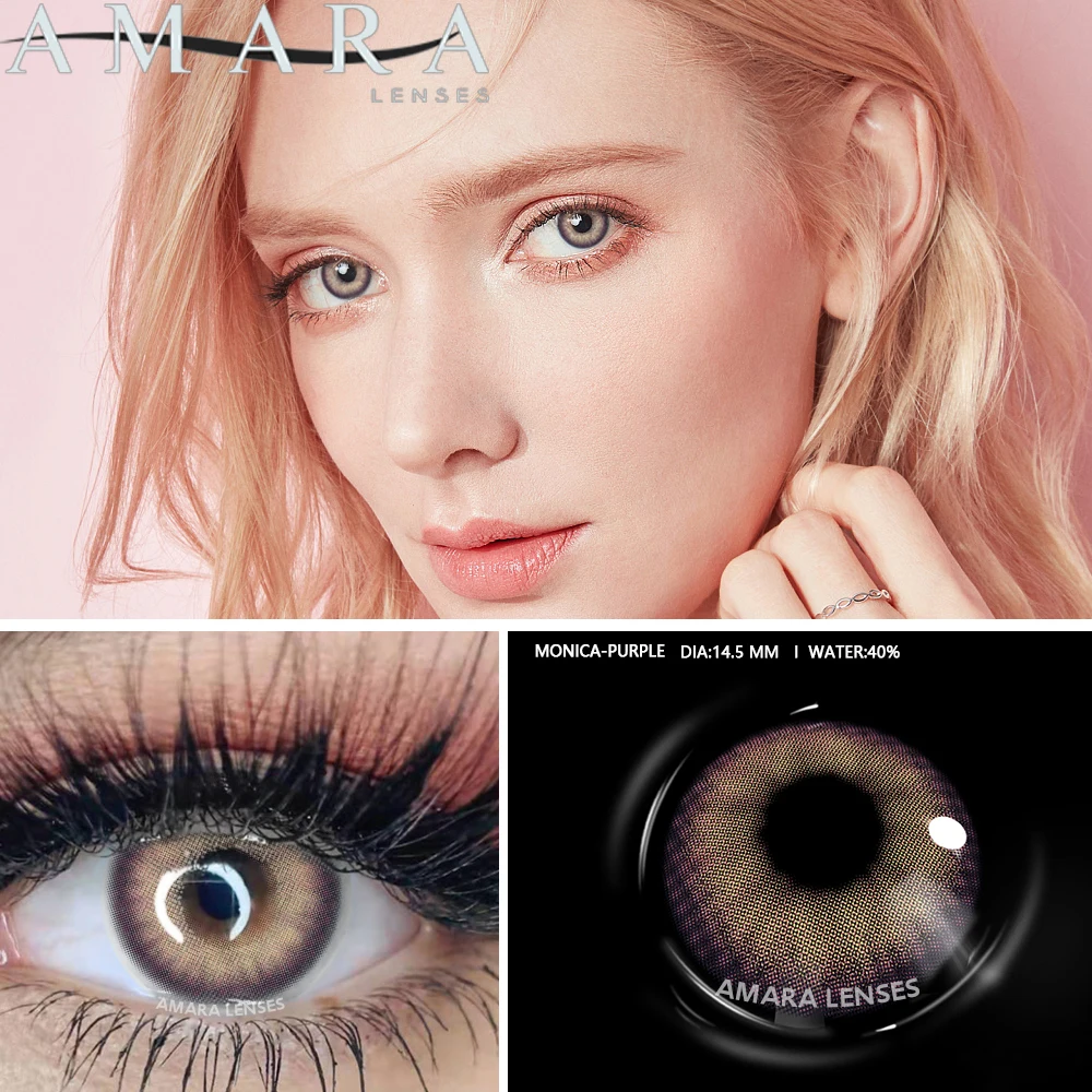Цветные контактные линзы AMARA в год, 2 шт., Puipls, косметические ...