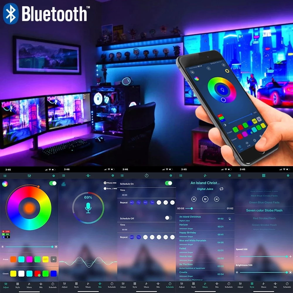 Светодиодная лента USB 5050, Bluetooth, RGB, 5 В, гибкая светодиодная лента для подсветильник телевизора
