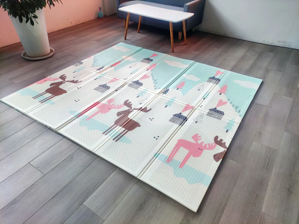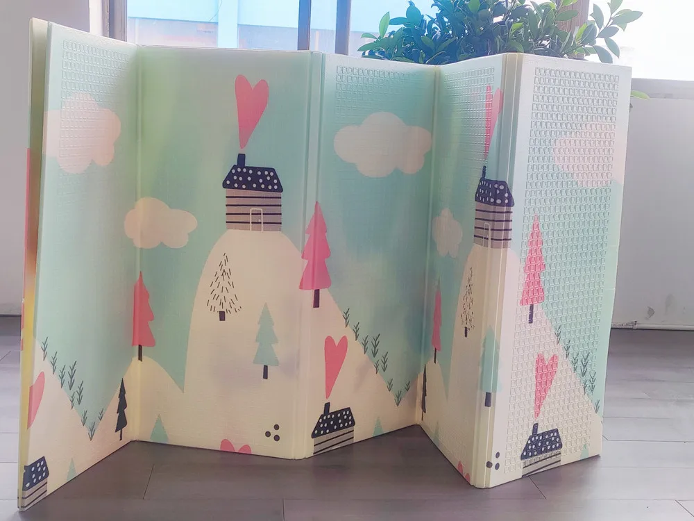 1. Супер-легкий в складку коврик может быть упакован в компактный размер с сумкой для переноски, не занимает много места для хранения. Двусторонний дизайн с разными цветами и узорами удивит вас и подарит ребенку ощущение свежести, чтобы вызвать его любопытство.