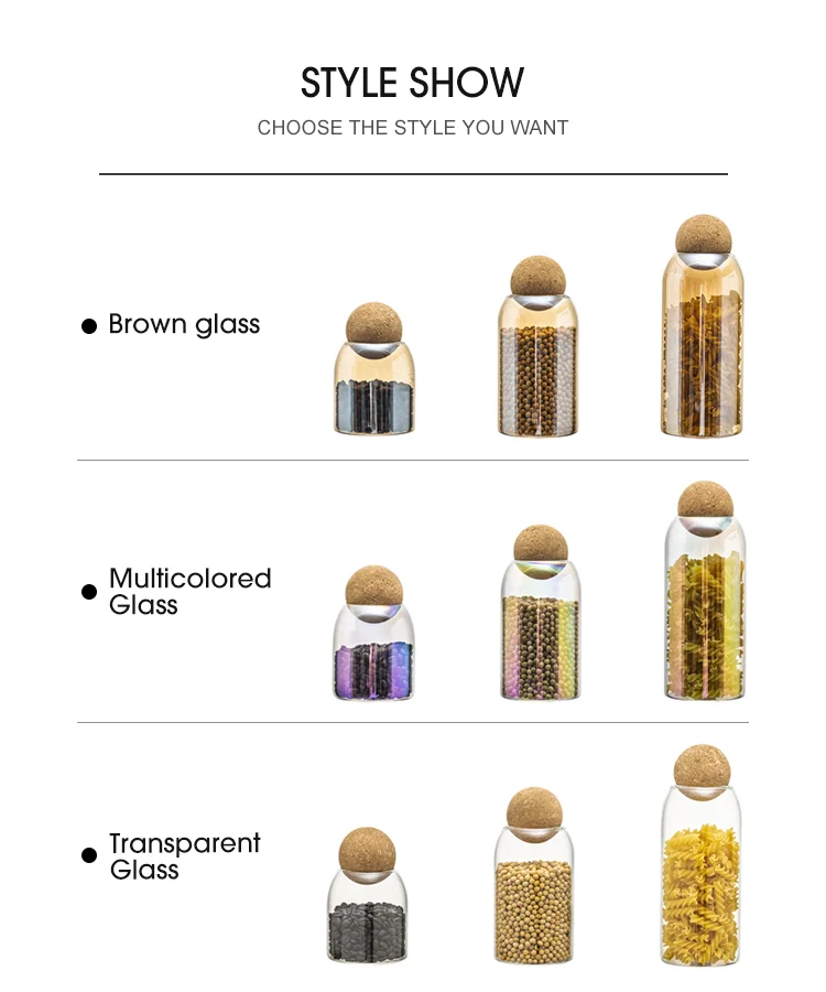 Прозрачная стеклянная бутылка без свинца с шариком и Пробковой Крышкой, банка для хранения, герметичные чайные банки, сушеные фрукты, хлопьи, закуски, кофе