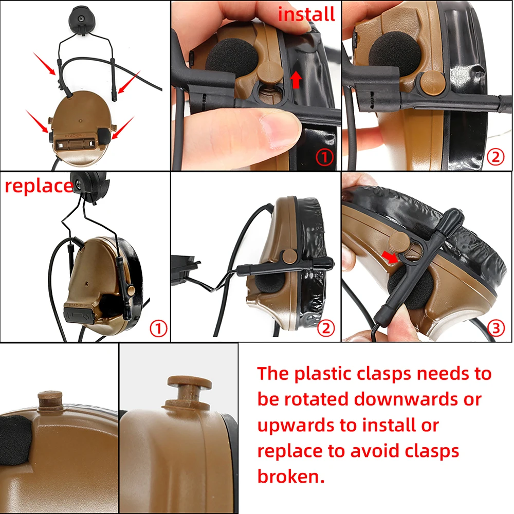Аксессуары для тактической гарнитуры COMATC III, силиконовые наушники для шлема с закругленным кронштейном, электронные шумоподавляющие наушники