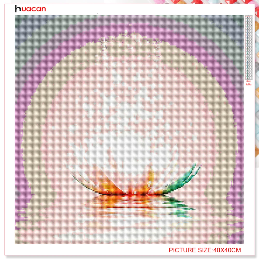 Полноразмернаякруглая Алмазная мозаика Huacan с лотосом 5D, алмазная живопись, вышивка, цветочная картина стразы, домашний декор
