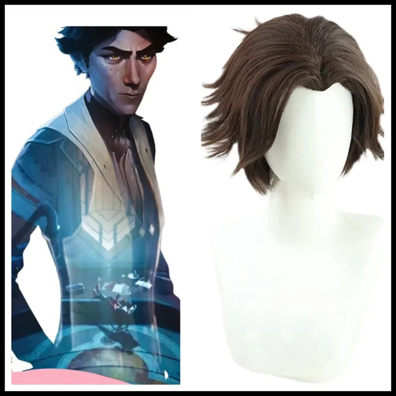 Парик для косплея LOL Arcane Viktor короткие коричневые термостойкие синтетические волосы парики + бесплатная шапочка для парика