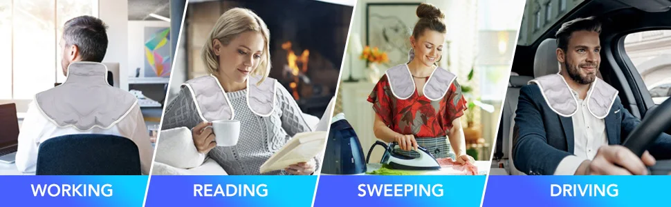 1. Гипертермия или холодная терапия-гипертермия и холодная терапия помогают облегчить боль в шее, плечах и спине. Гипертермия обеспечивает глубокий комфорт во всей области мишени, снимает напряжение, давление и боль. Вам нужно только нагреть горячую и влажную грелку в микроволновой печи для гипертермии. Холодная терапия ограничивает кровеносные сосуды к мышцам и окружающим тканям, тем самым эффективно уменьшая отеки. Охладите шейные и плечевые обертки микроволновой печи в морозильной камере для холодной терапии.2. Подогнать контуры тела и держать его на месте-разработан с высоким воротником, Экстра широкими плечами, удлиненным нагрудным чехлом и задней стороной дизайн, эта грелка для шеи подойдет для шеи и плеч, что делает вас абсолютно комфортным. Поскольку вес наполнения равномерно распределен, взвешенная нагревательная обертка для шеи может поддерживать баланс и поддерживать стабильность шеи и плеч, поэтому усовершенствованная конструкция, как правило, применима к большинству типов тел.3. Легко использовать в любое время и в любом месте. При работе за столом, сидя на диване, готовя еду или даже за рулем, эта грелка для шеи или охлаждающая упаковка обеспечивает больший комфорт.