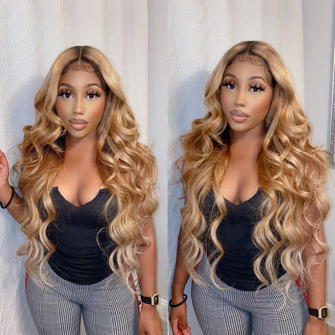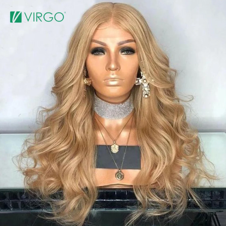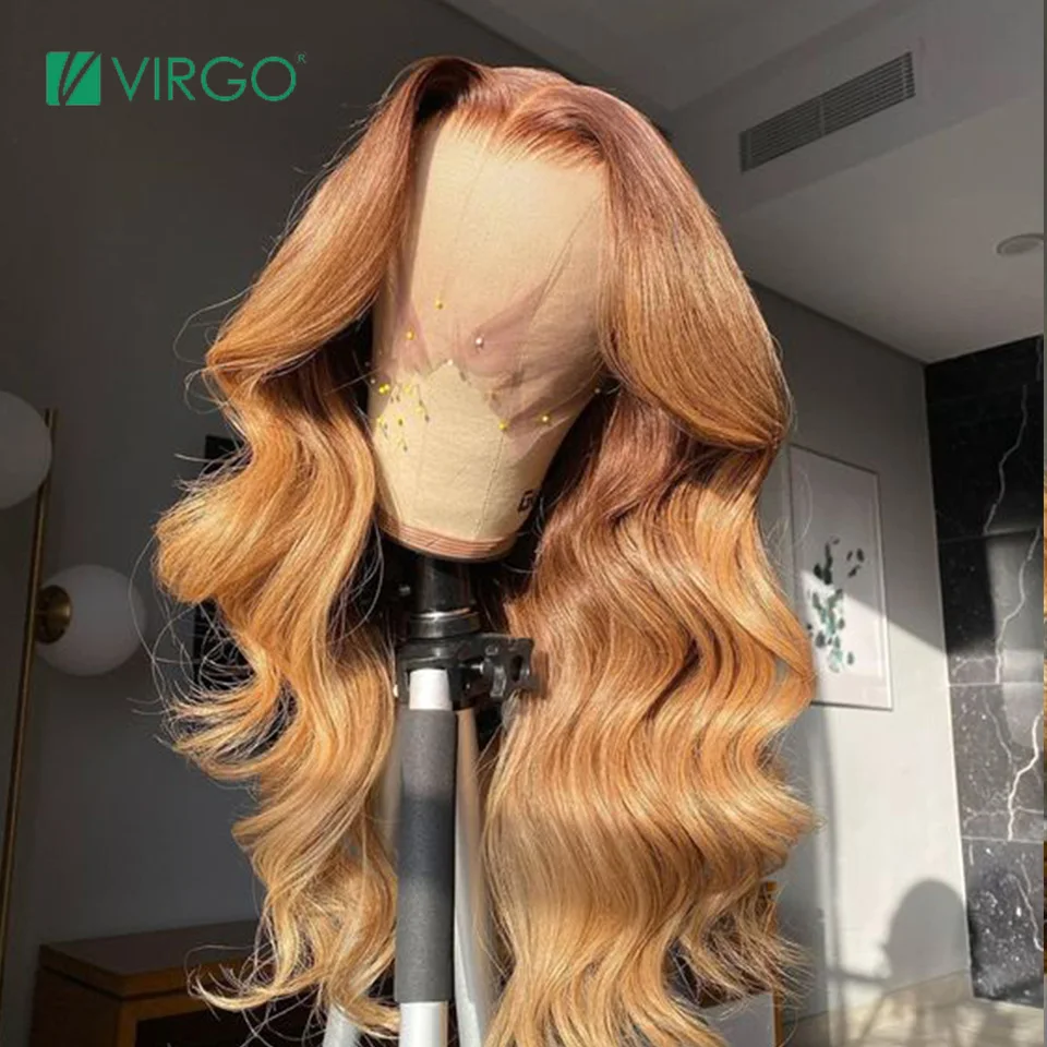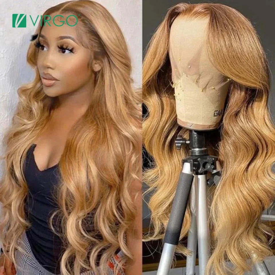 Дева медовый блонд 13x 4 кружевные передние парики прозрачные волнистые передние парики #27 30 дюймов T часть парики из человеческих волос предварительно выщипанные Remy