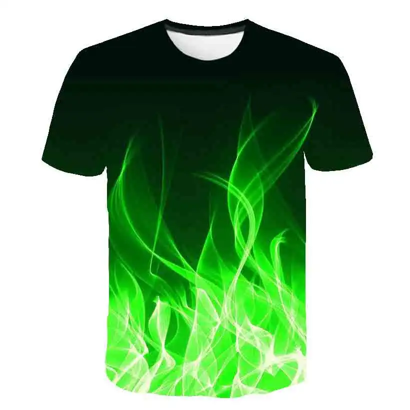 Мужская футболка с 3D-принтом зеленого пламени, зеленая психоделиче...