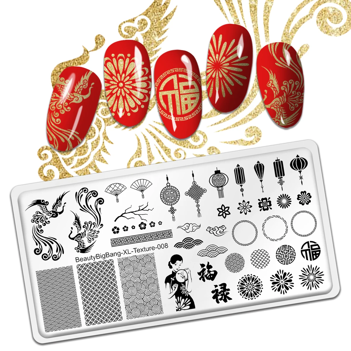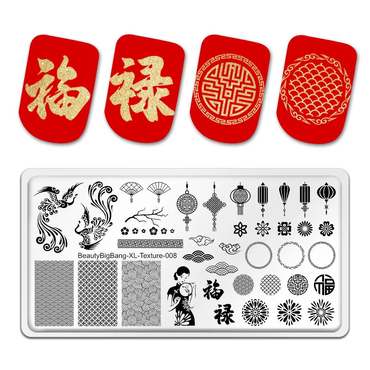 Beautybigbang штамповочная пластина для ногтей китайские слова фонарь Сделай Сам изображение из нержавеющей стали Шаблон для дизайна ногтей трафарет инструмент текстура 008