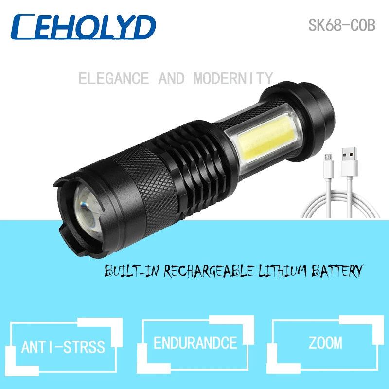 Примечание: SK68RC (встроенный аккумулятор)Цвет: черныйПереключатель: Tactic Click Reverse SwithВодонепроницаемость, можно использовать в дождливый день, но нельзя положить его в воду!Регулируемый фокус, вы можете увеличить/уменьшить масштаб, чтобы настроить его луч.