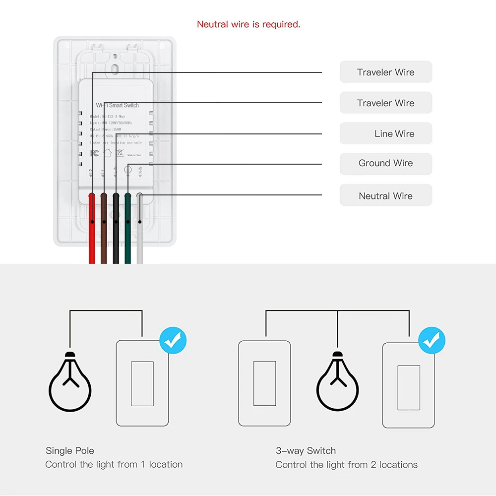Умный настенный выключатель света, Wi-Fi, не требуется нейтральный ...