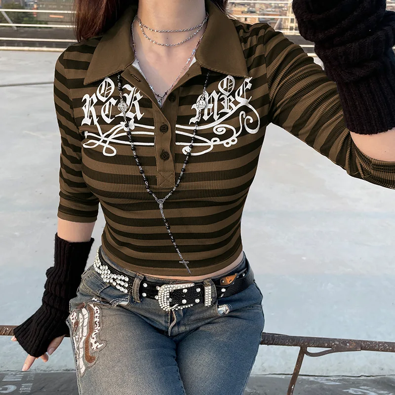 Женская футболка на пуговицах Топы в готическом стиле Y2K с V-образ...