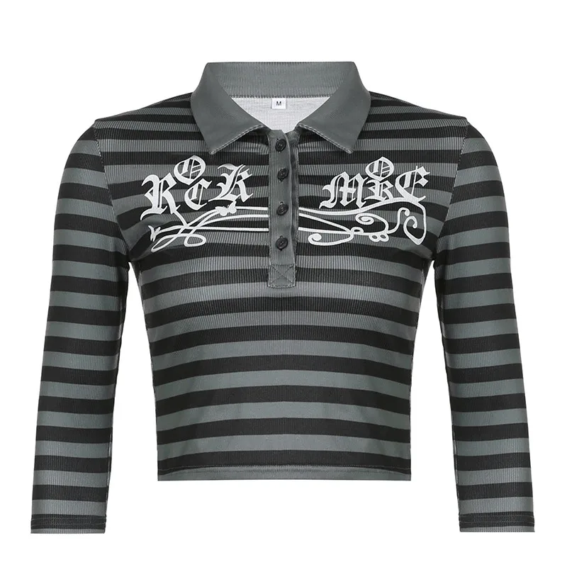 Готическая полосатая одежда для гранжа, женские милые укороченные т...