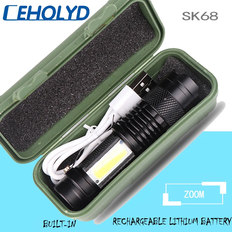 Примечание: SK68RC (встроенный аккумулятор)Цвет: черныйПереключатель: Tactic Click Reverse SwithВодонепроницаемость, можно использовать в дождливый день, но нельзя положить его в воду!Регулируемый фокус, вы можете увеличить/уменьшить масштаб, чтобы настроить его луч.