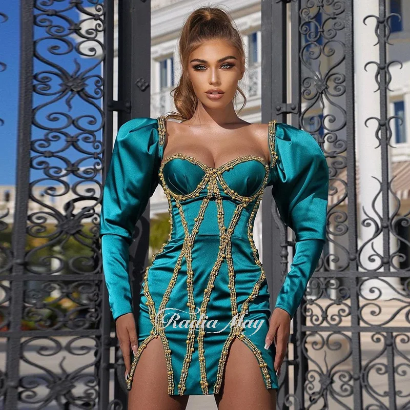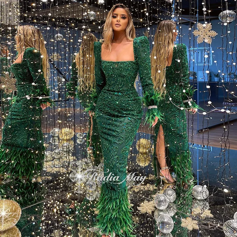 Роскошное Зеленое Длинное Вечернее Платье с бусинами 2021 сексуальн...