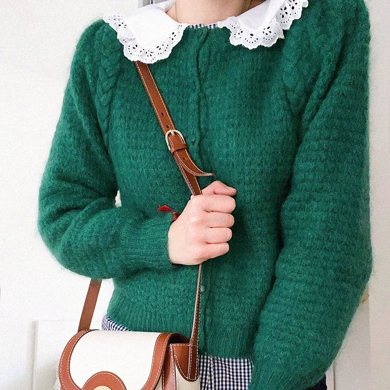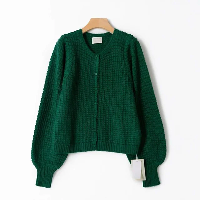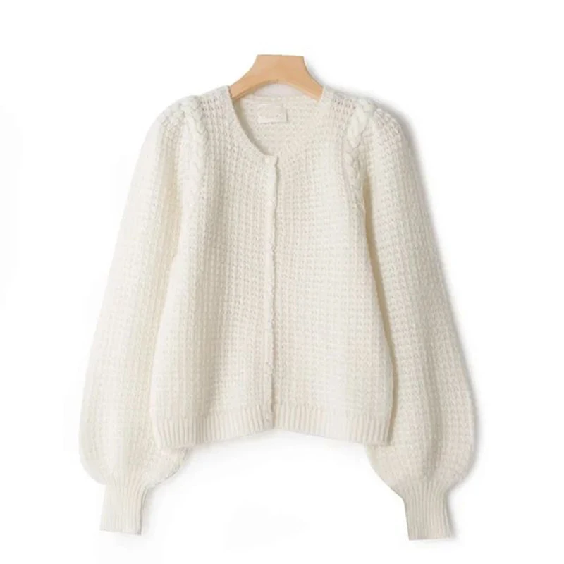 Трикотажный fantaisie свитер, женский зимний мохеровый кардиган с круглым вырезом и рукавами-фонариками, винтажный Повседневный жилет