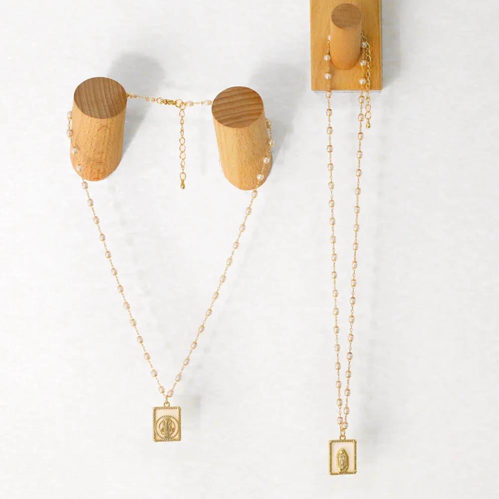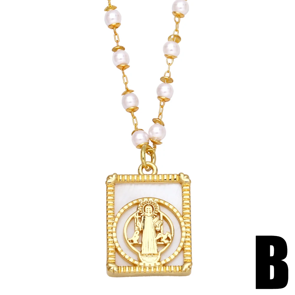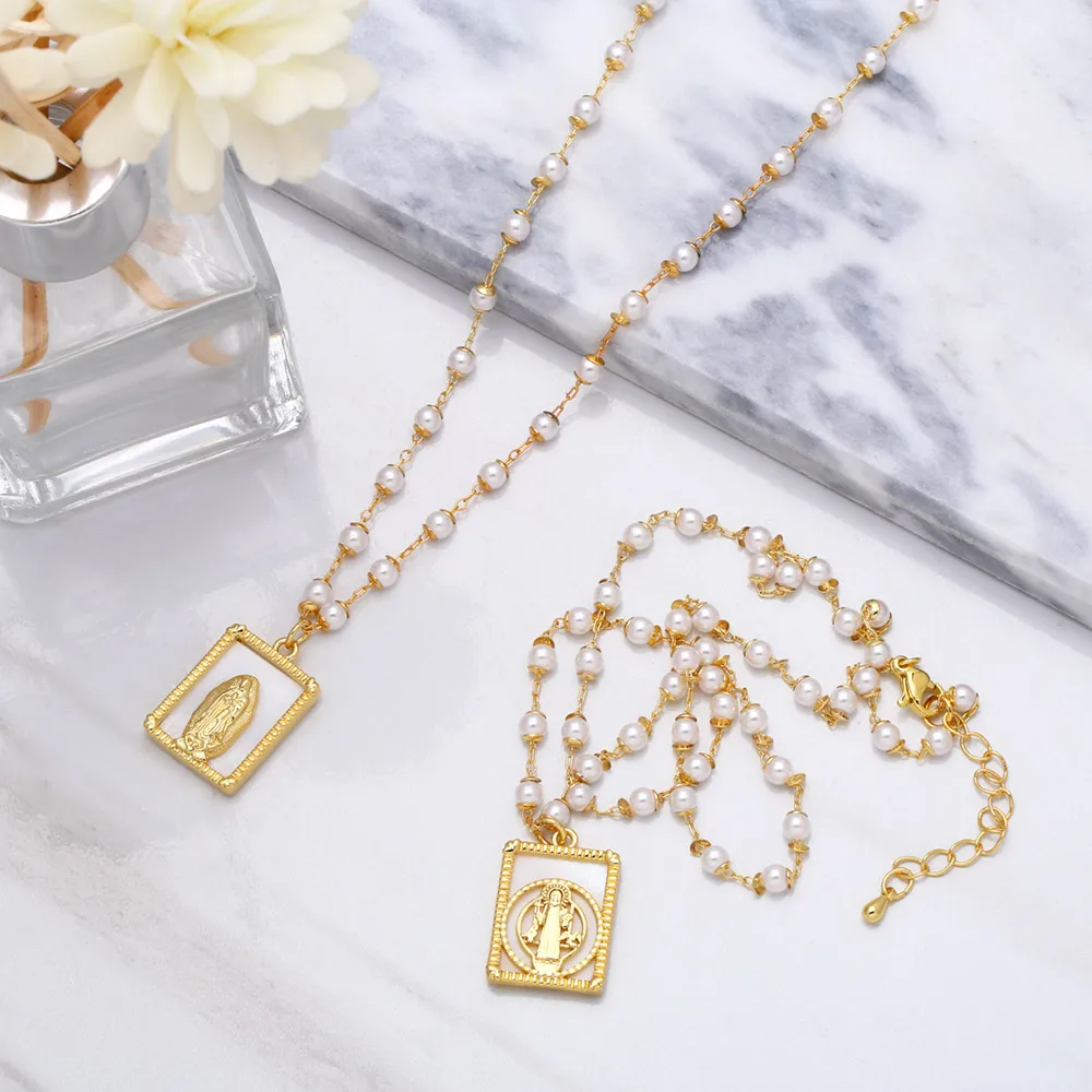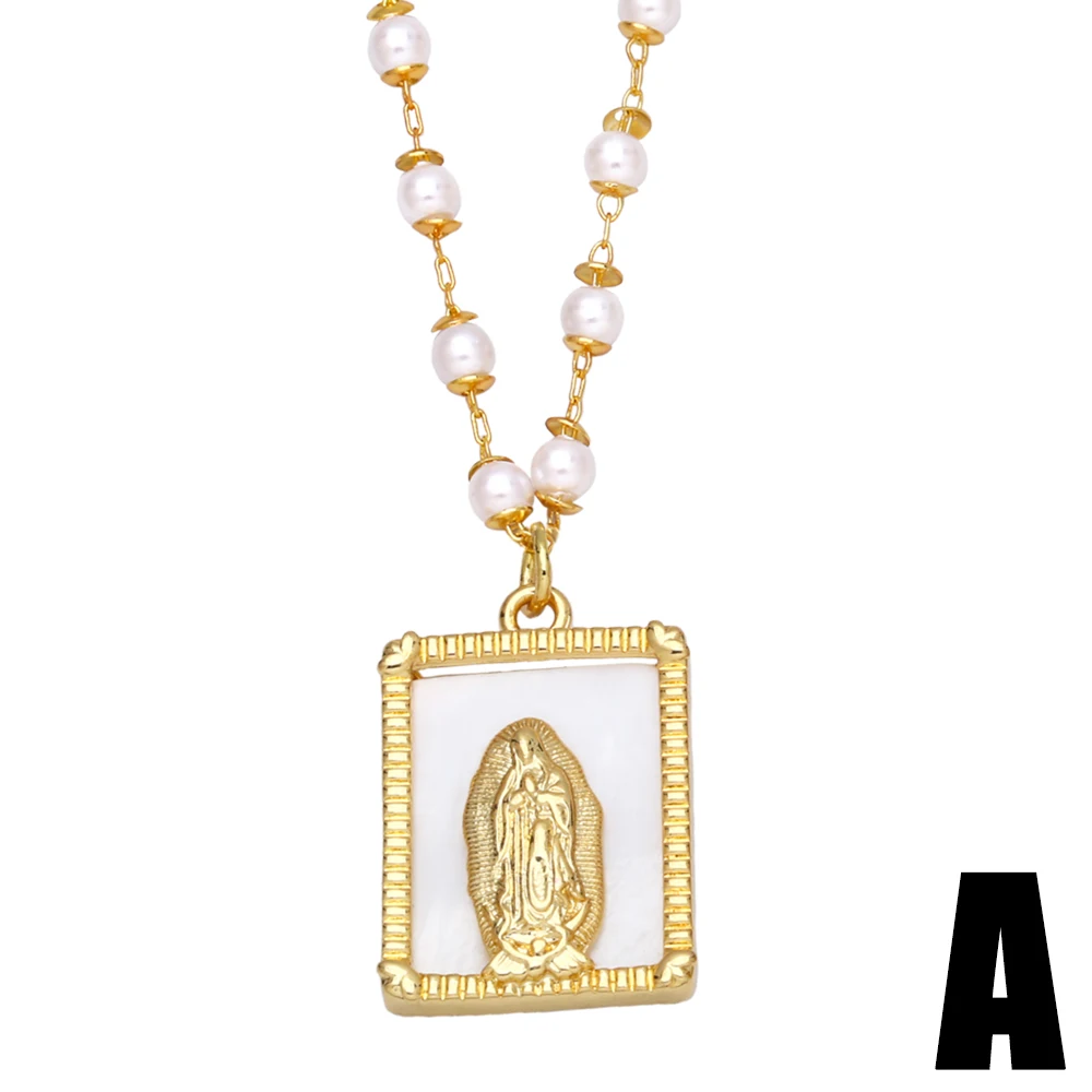 FLOLA ожерелье-цепочка из бисера медная раковина квадратный кулон ожерелье Девы Марии для женщин подарок для девочек христианские ювелирные изделия nkea072