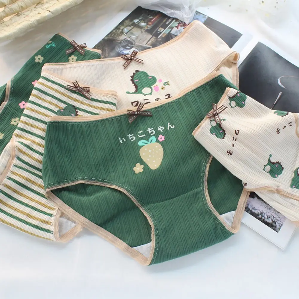 Симпатичное хлопковое дышащее японское женское нижнее белье средняя талия аниме-трусики динозавр студенческое мультяшное нижнее белье