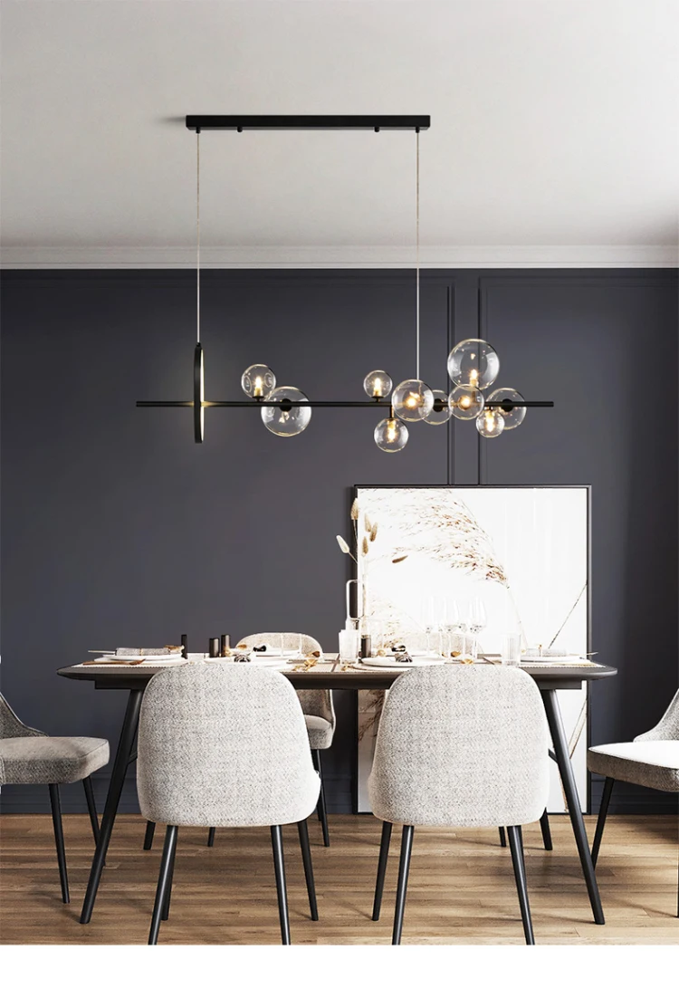 Черная светодиодная люстра, современный потолочный светильник со стеклянными шариками для гостиной, столового стола, бара, кухни