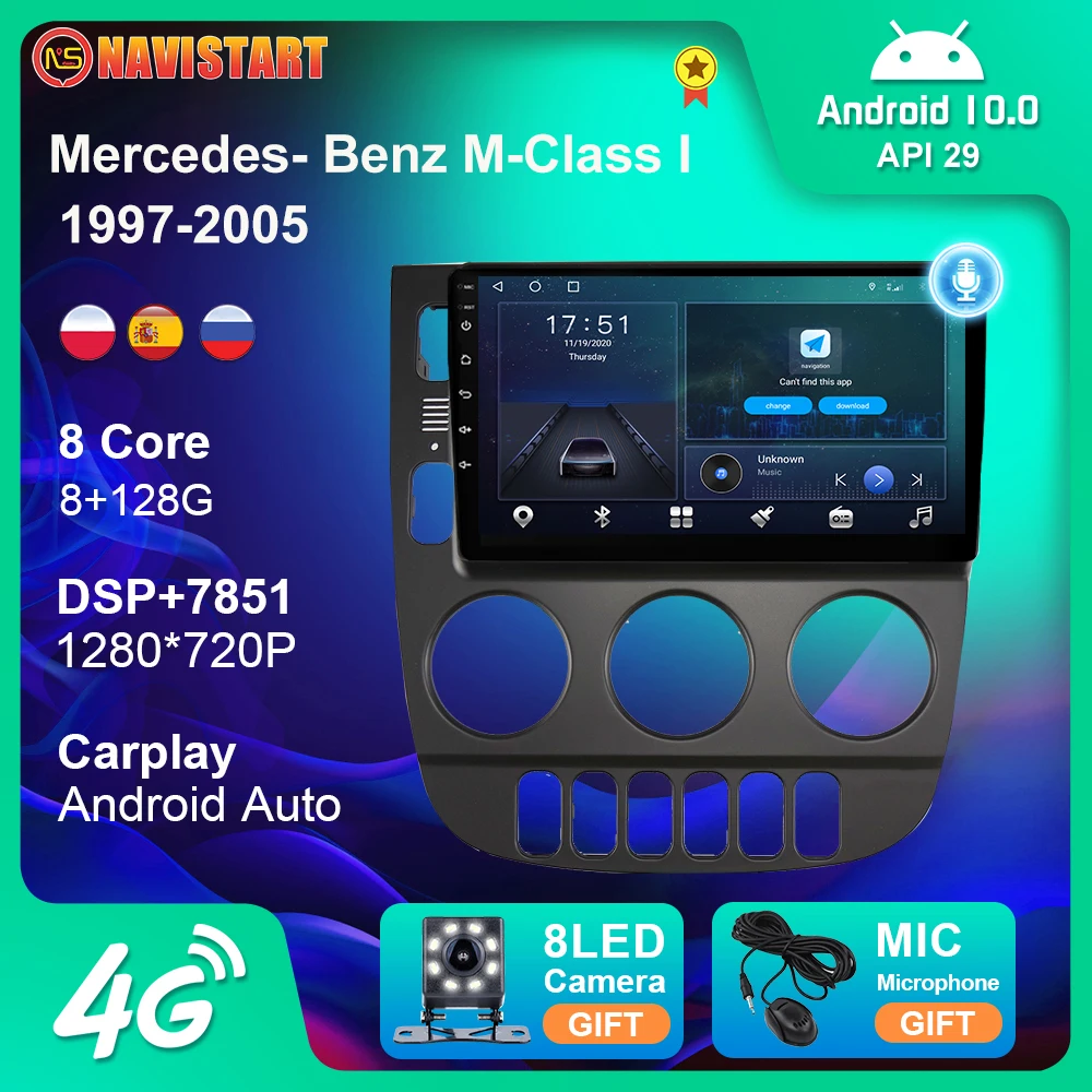 2 Din для Mercedes Benz M-Class I W163 ML 1997-2005 Android 10 автомобильное радио-навигация GPS Android Авто Carplay Стерео DVD плеер