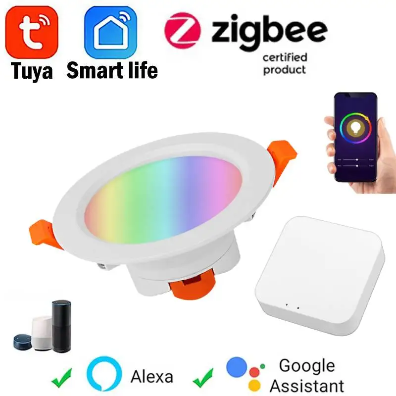 Умный потолочный светильник Tuya Zigbee, светодиодная лампа с голосовым управлением и управлением через приложение, 7 Вт, RGBCW, работает с Alexa Google Home