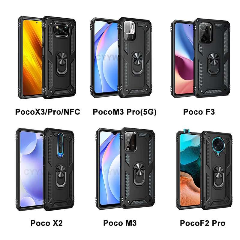 Противоударный армированный чехол для Xiaomi Mi Poco X3 Pro NFC GT, чехол для телефона Poco M3 M4 F3 F2 Pro X2, кольцо-подставка, бампер, задняя крышка