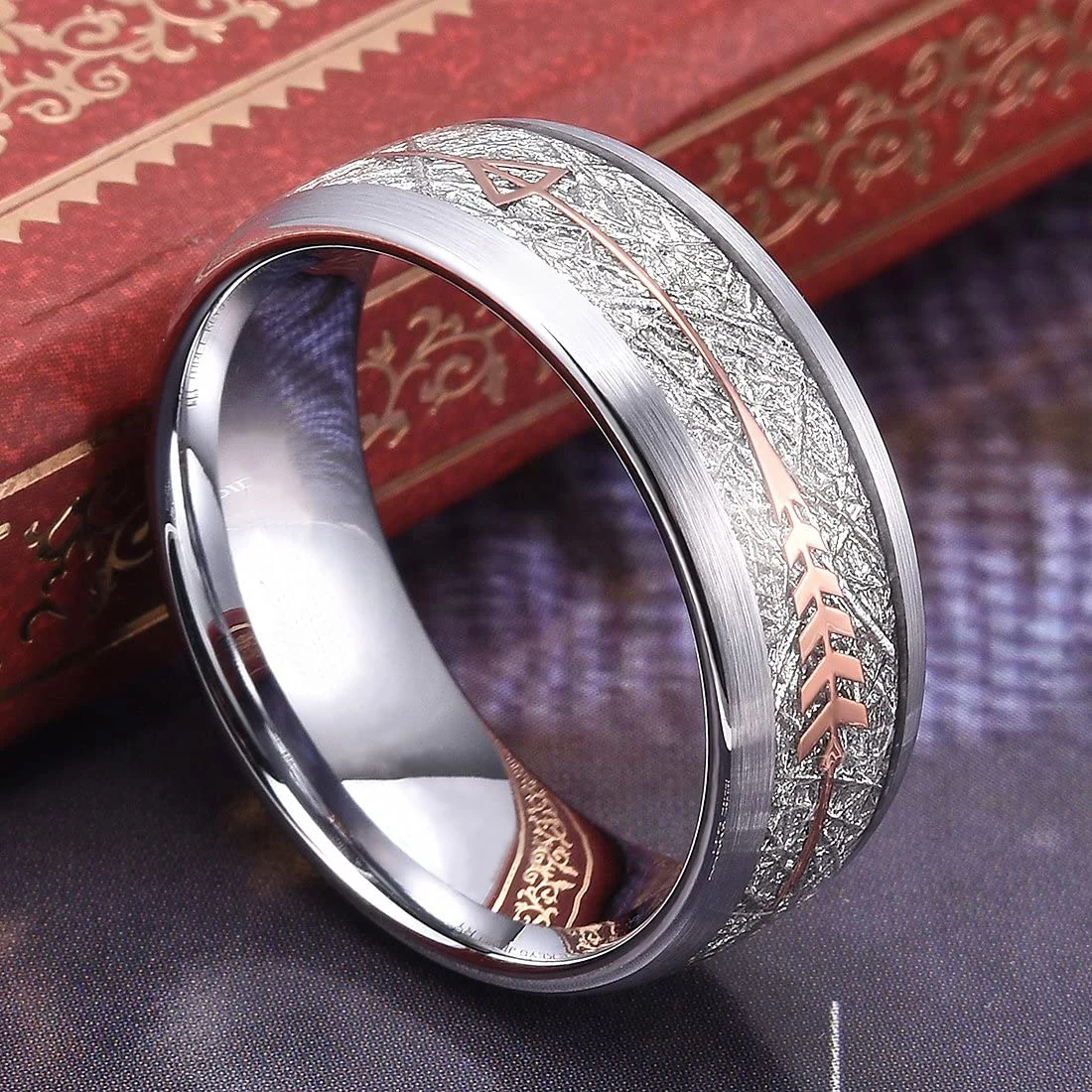 Роскошное мужское кольцо 8 мм из вольфрамовой нержавеющей стали 8 цветов, свадебное кольцо Koa с инкрустацией из дерева и метеорита, кольцо со стрелками в стиле панк, мужское свадебное кольцо, ювелирные изделия