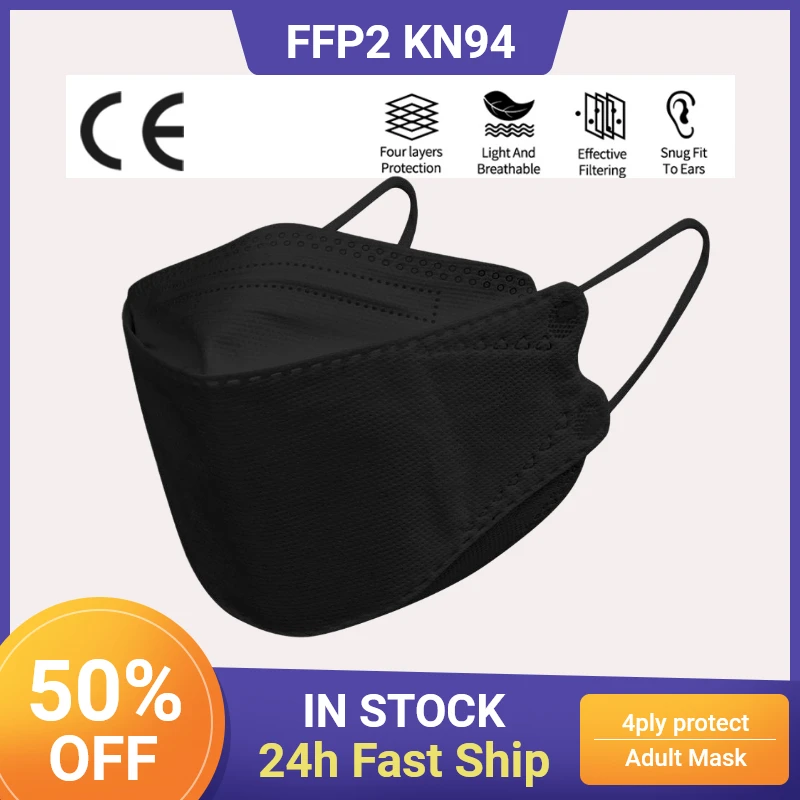 10-100 шт. FFP2 маска для лица для взрослых FPP2 mascarilla одноразовая KN95 маска для лица черная рыба FFP2MASK kf94mask Корея
