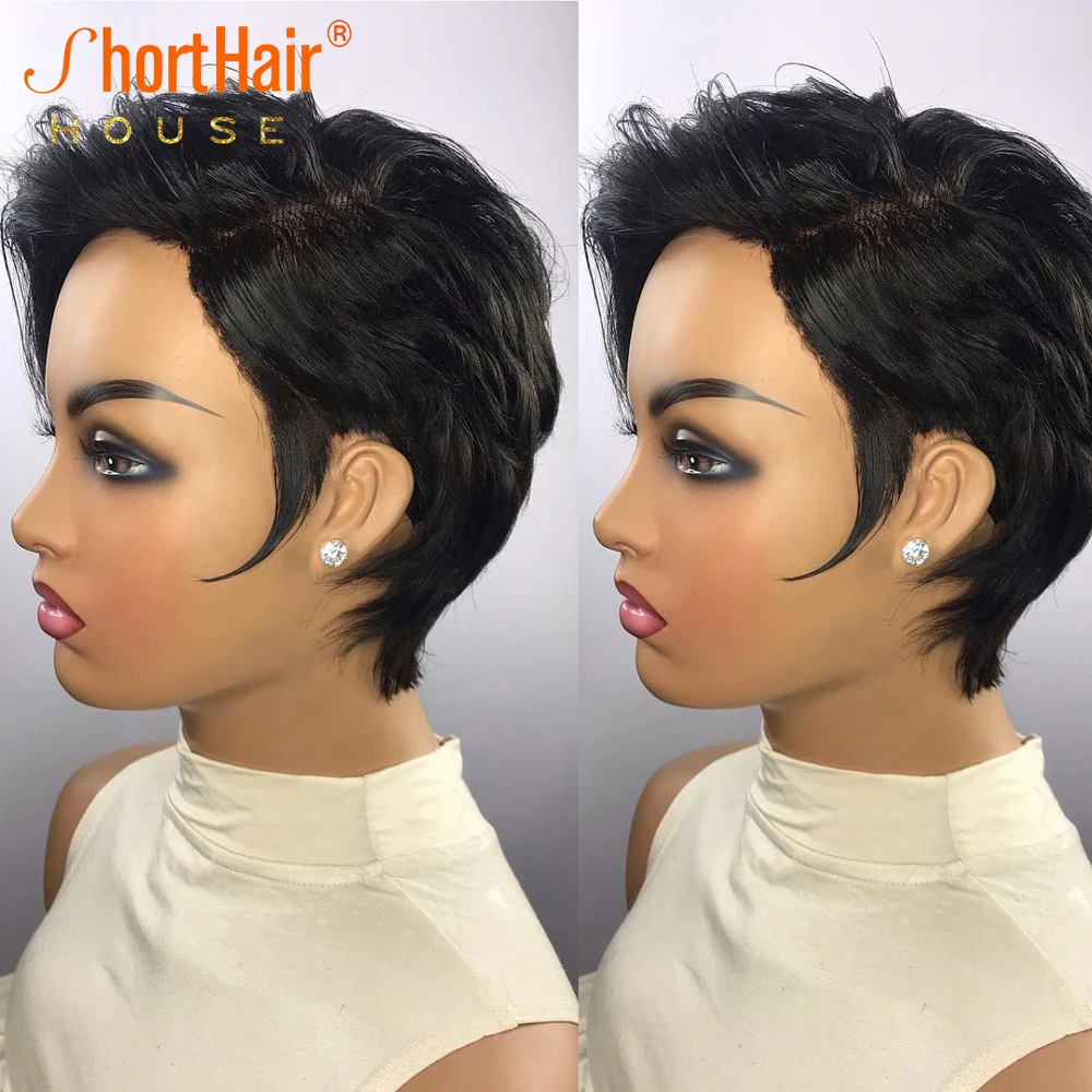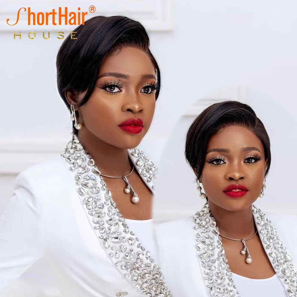 Парик с вырезами фея, парики из прозрачных человеческих волос на сетке для женщин, парик с боковой частью, короткие парики боб, дешевые безклеевые парики естественного цвета