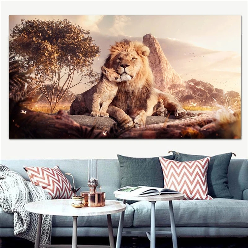 Животные, холст, плакаты, львы, пары, семья, настенное искусство, х...