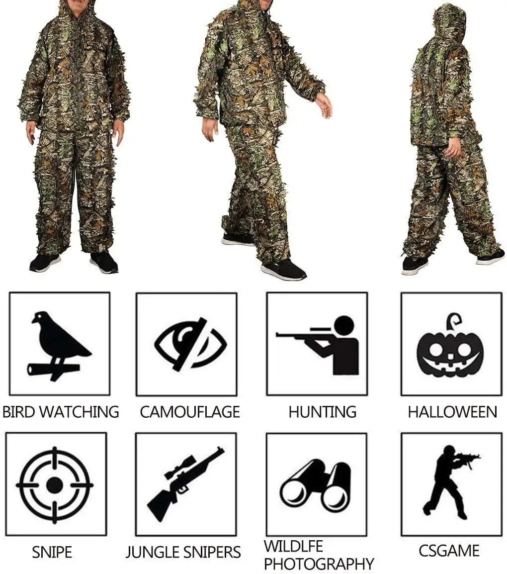Уличный Камуфляжный костюм Галли с 3D легким капюшоном Камуфляжный Ghillie дышащий охотничий костюм