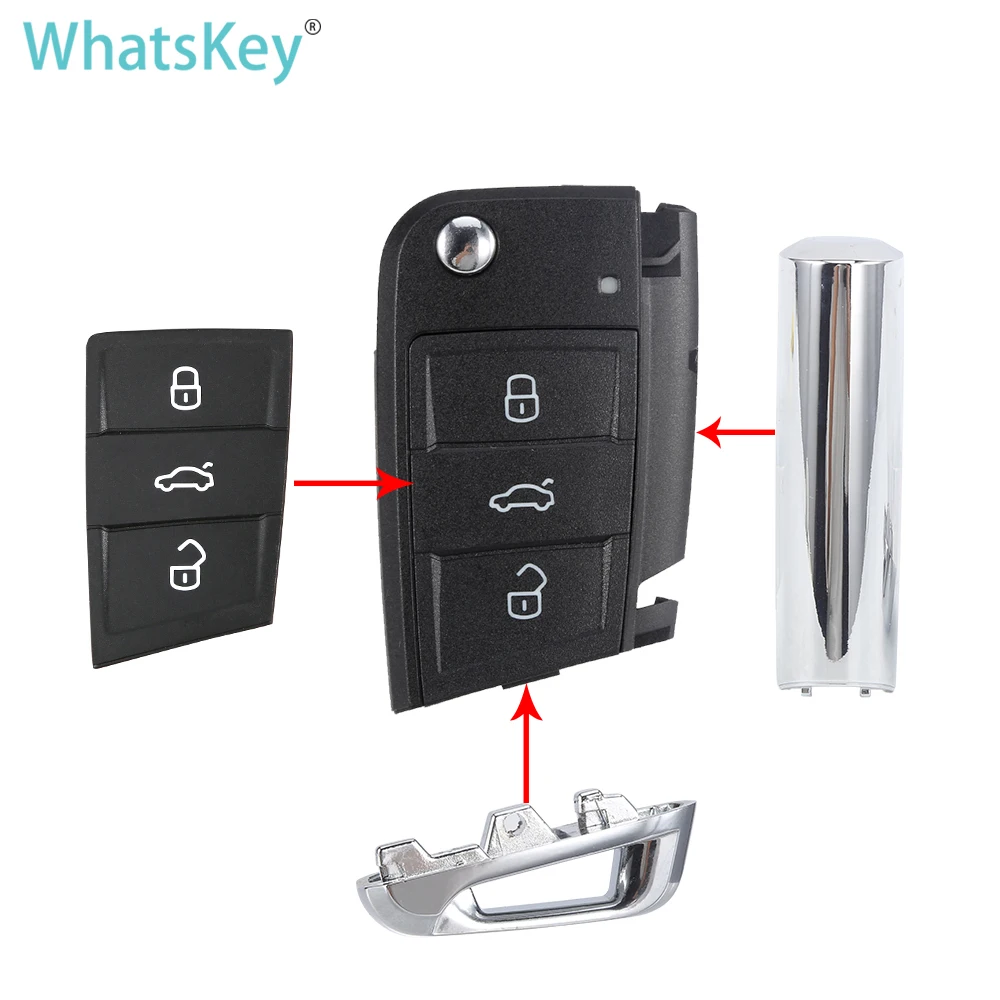 WhatsKey Автомобильный ключ оболочка сторона блестящая металлическая часть Накладка для Vw Gollf 7 MK7 для Skoda Octavia A7 Seat Leon Altea Ibiza автомобильные аксессуары