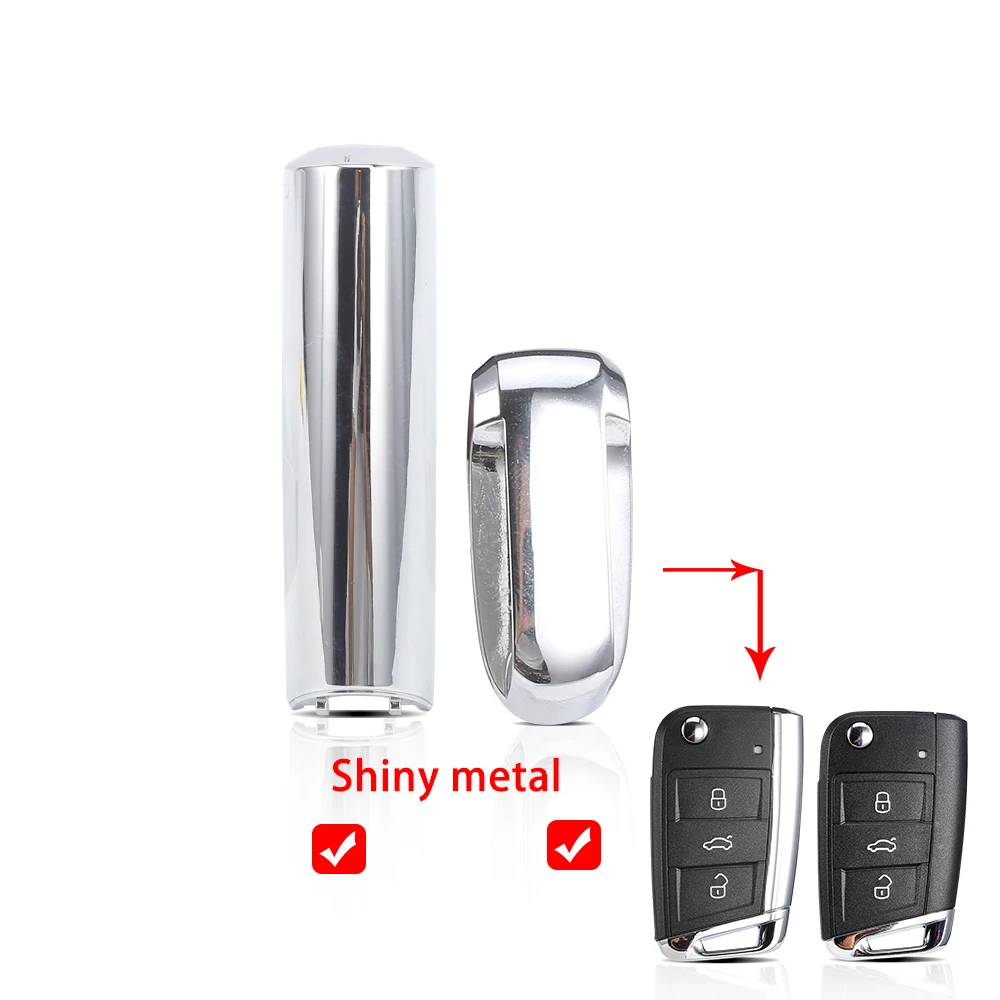 Чехол для автомобильного ключа, боковой, блестящий, металлический, задний, для Vw Gollf 7 MK7, для Skoda Octavia A7 Seat Leon Altea Ibiza, автомобильные аксессуары