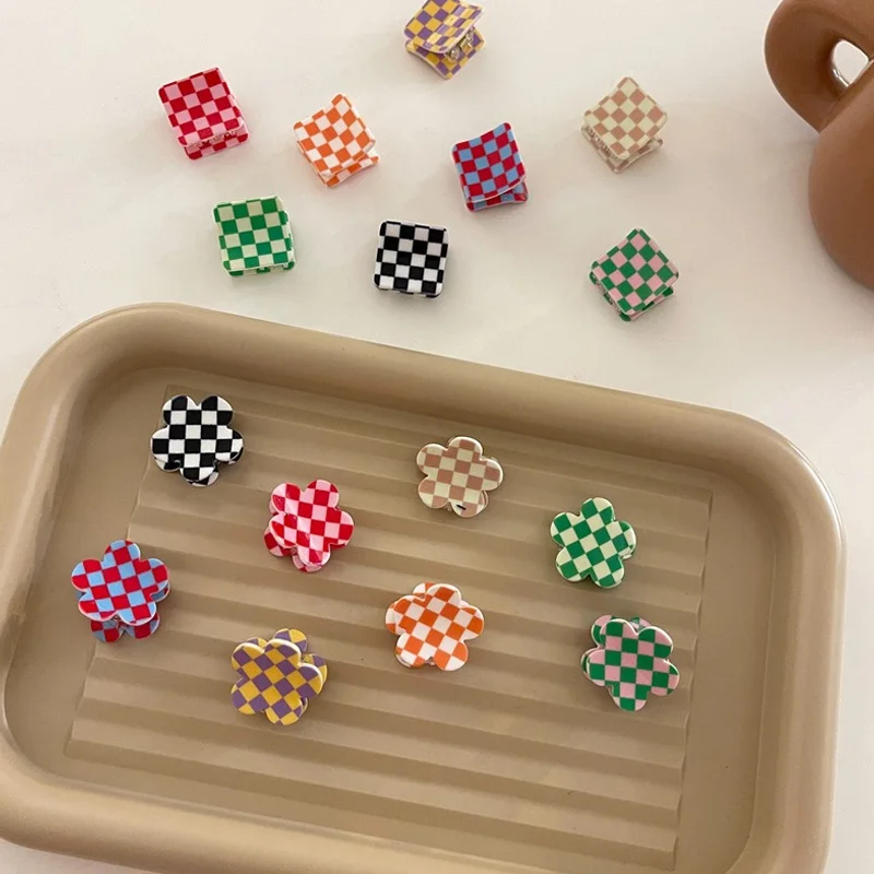 Мини клетчатая квадратная заколка для волос для женщин и девушек, женская заколка-краб для волос, простые заколки для волос, шикарная заколка для волос