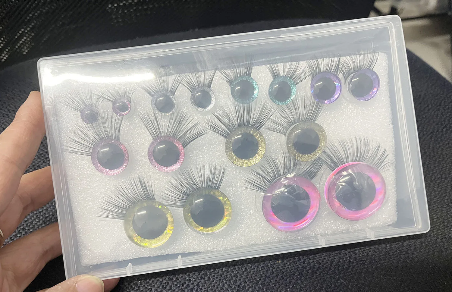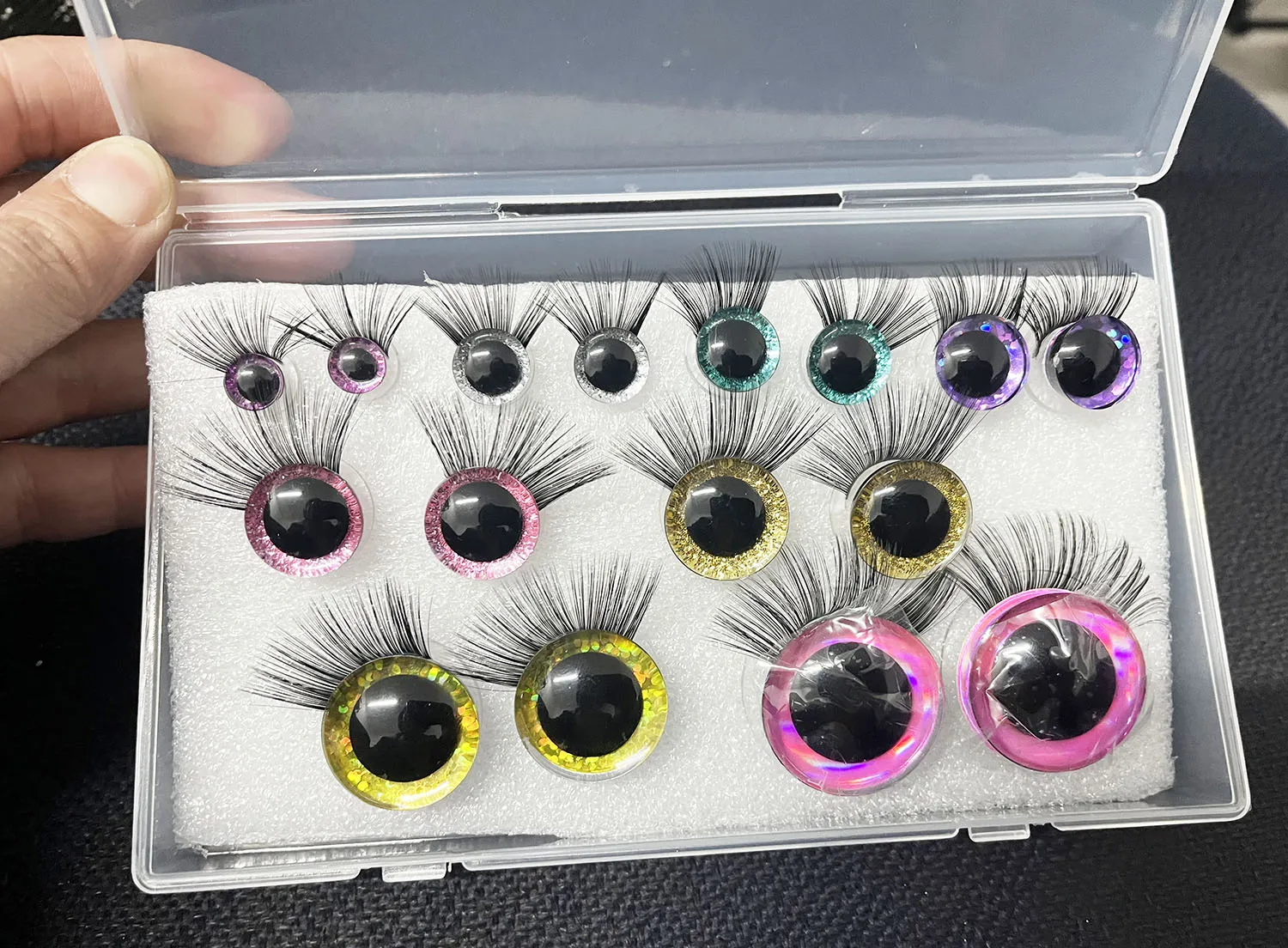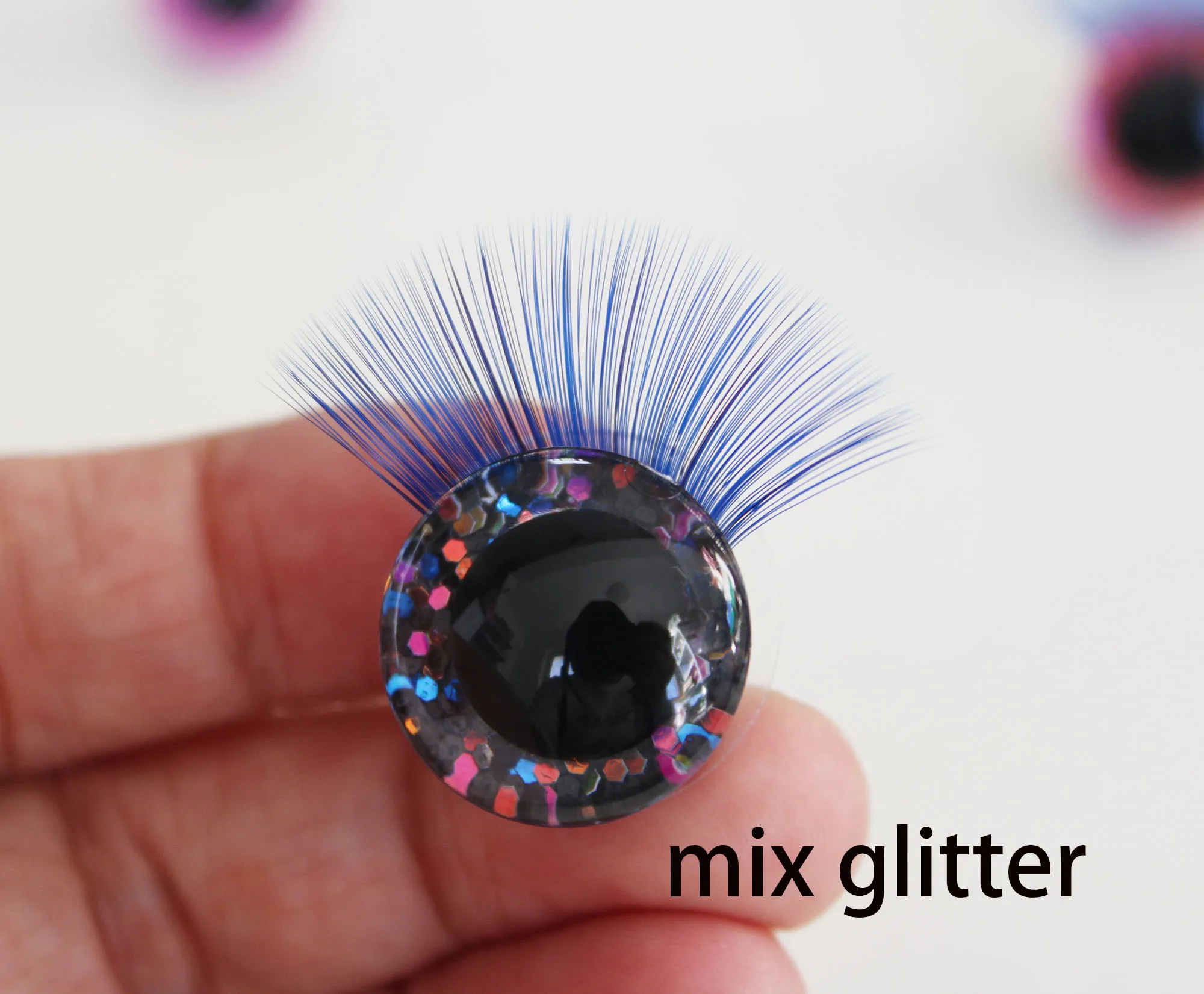 Глаза крафтовые с блеском, 14-30 мм, с синими ресницами и твердой ш...