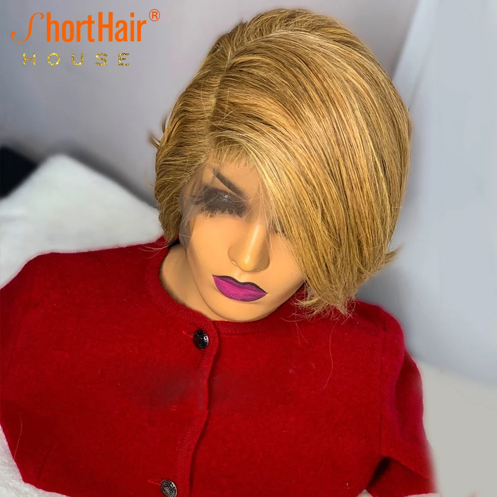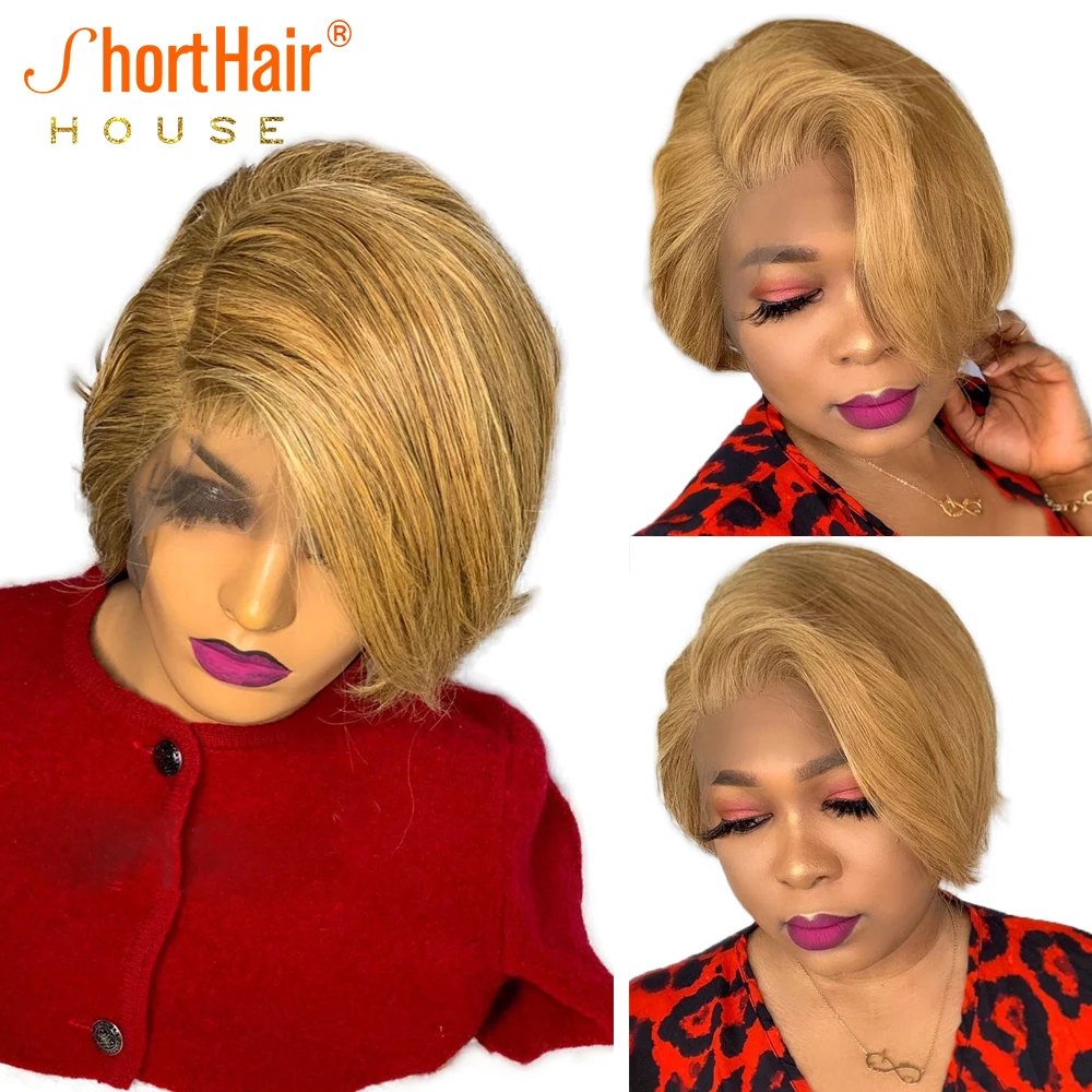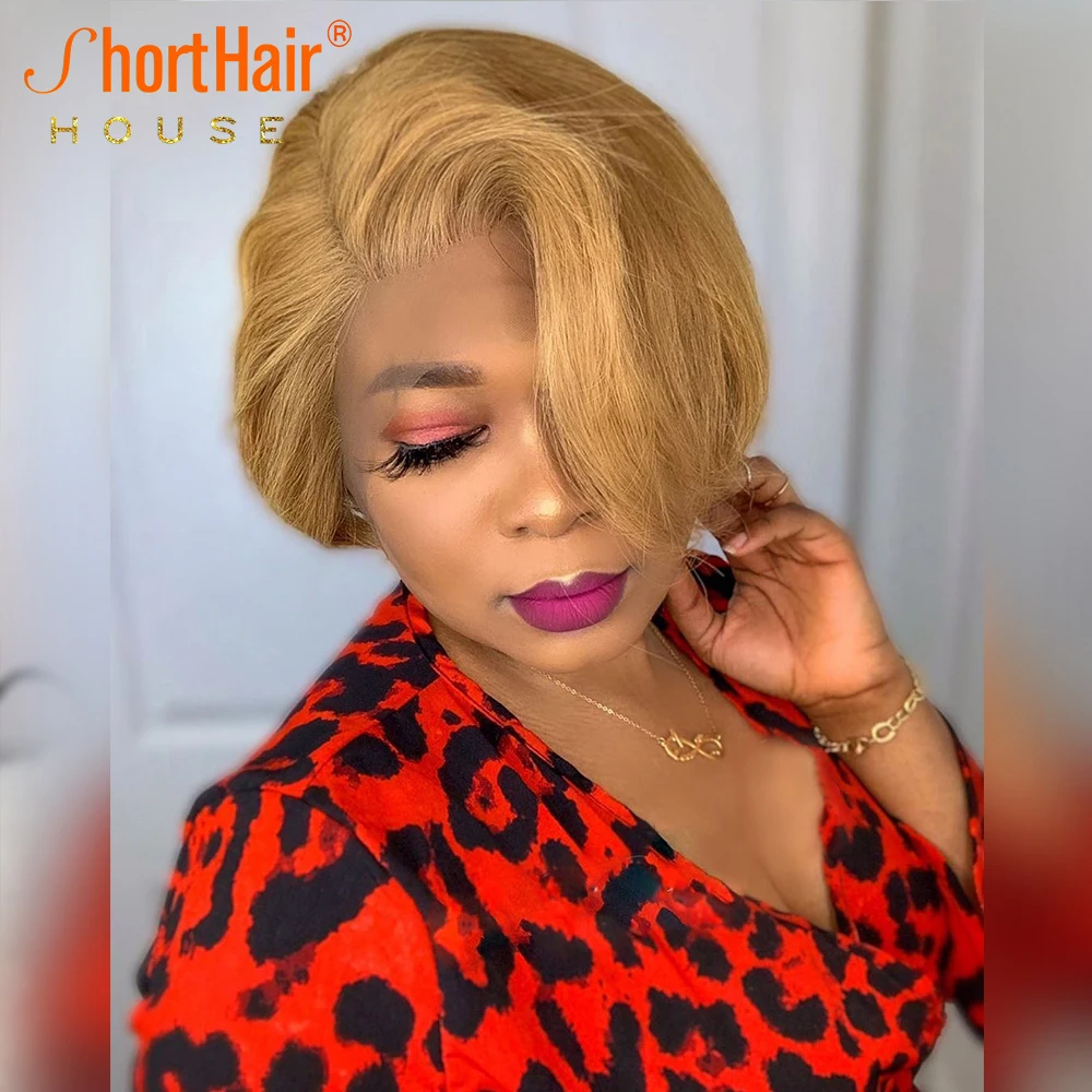 Имбирные короткие парики из человеческих волос, блонд, прозрачный парик на сетке спереди, Remy, перуанские прямые, оранжевые, на сетке спереди, парик для черных